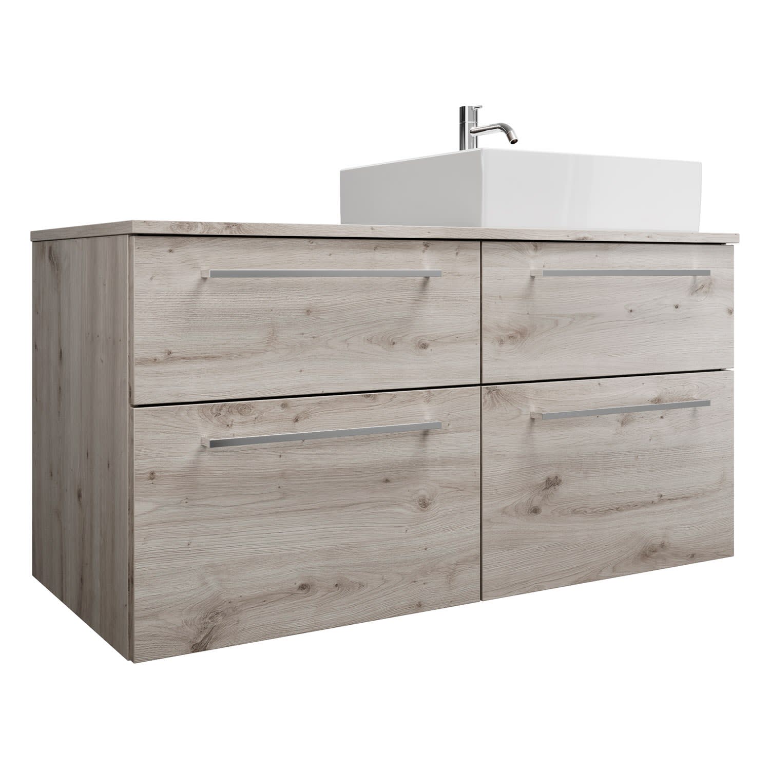 burgbad Eqio Waschtischkombination mit Keramik-Aufsatzwaschtisch 120 cm, rechts, mit Stangengriff P95
