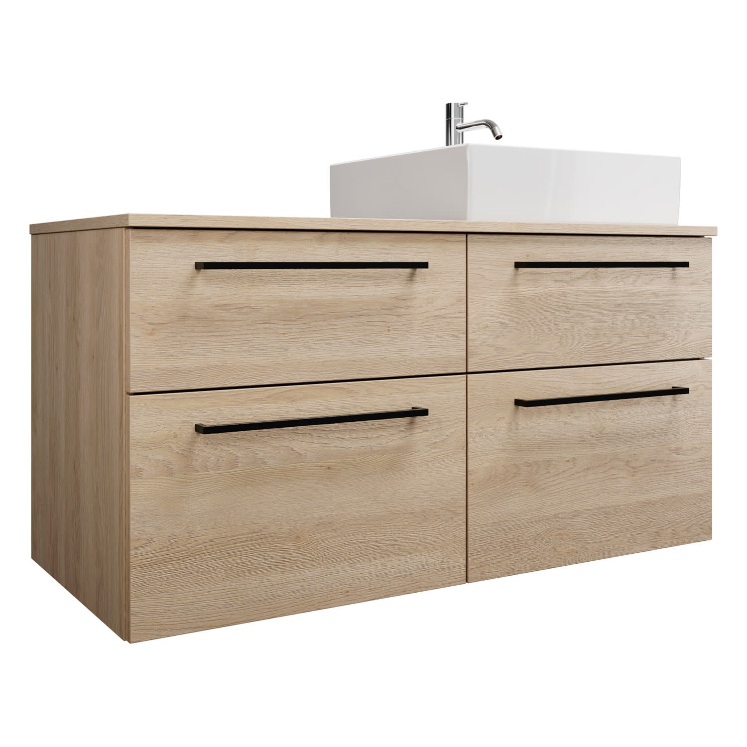 burgbad Eqio Waschtischkombination mit Keramik-Aufsatzwaschtisch 120 cm, rechts, mit Stangengriff G0234