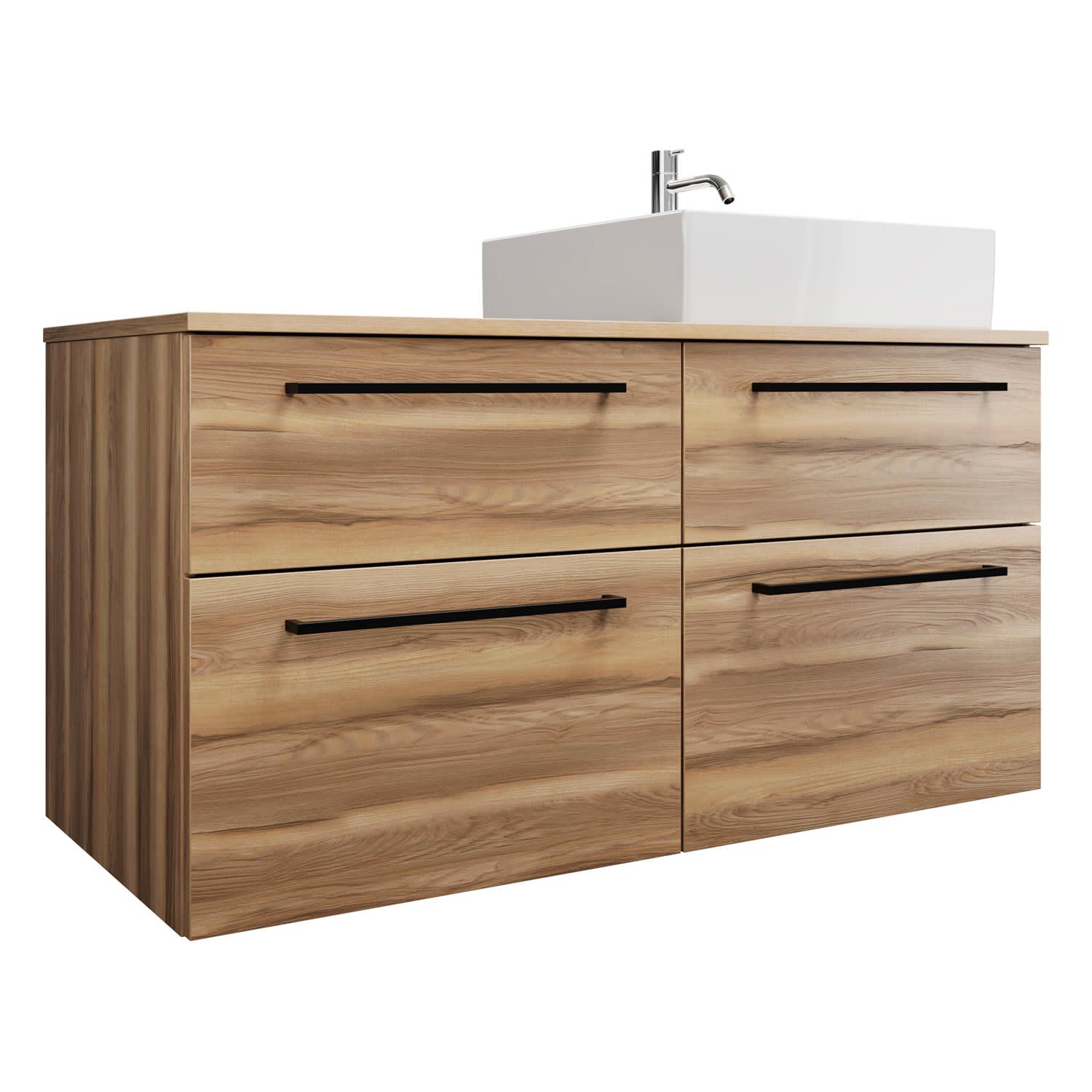 burgbad Eqio Waschtischkombination mit Keramik-Aufsatzwaschtisch 120 cm, rechts, mit Stangengriff G0234