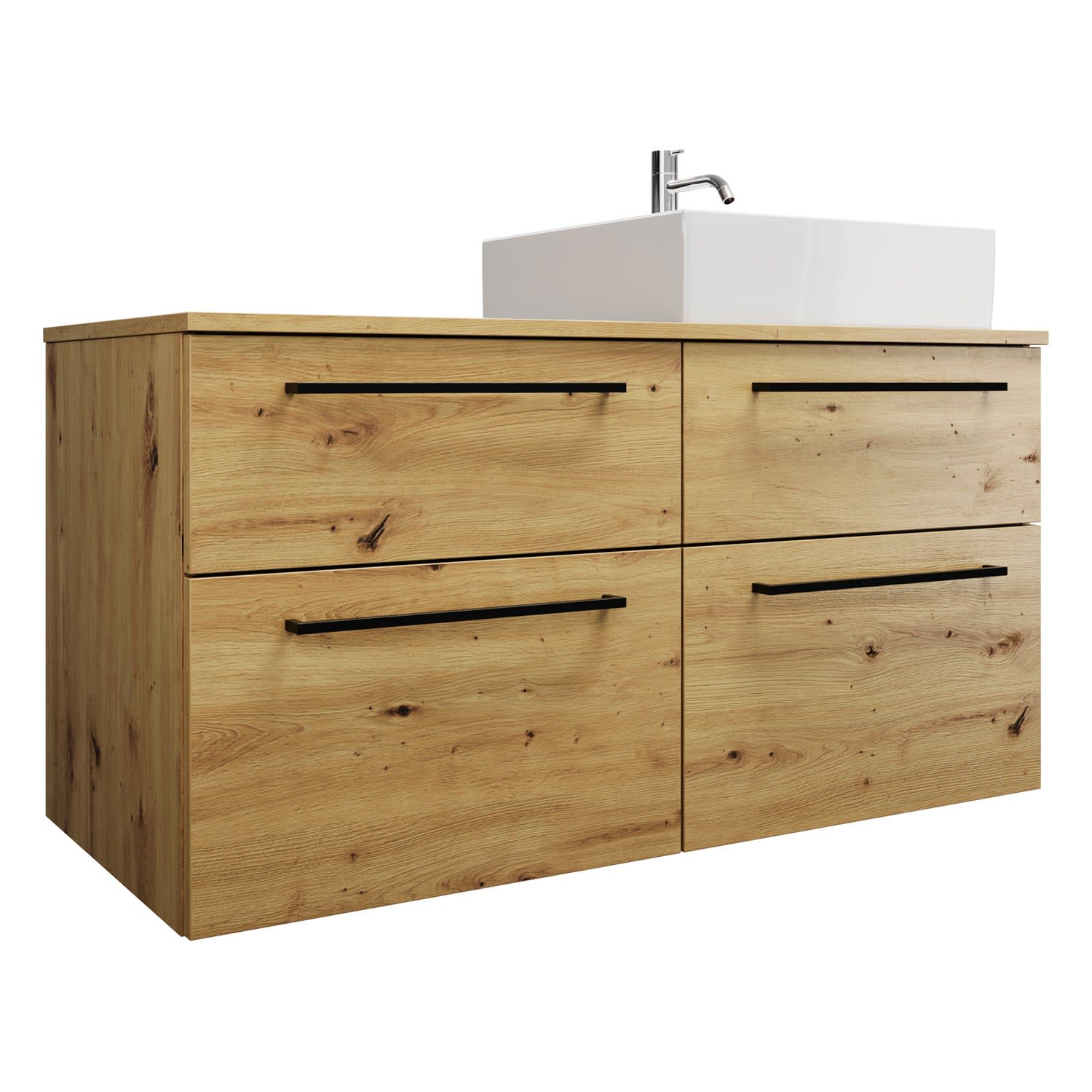 burgbad Eqio Waschtischkombination mit Keramik-Aufsatzwaschtisch 120 cm, rechts, mit Stangengriff G0234
