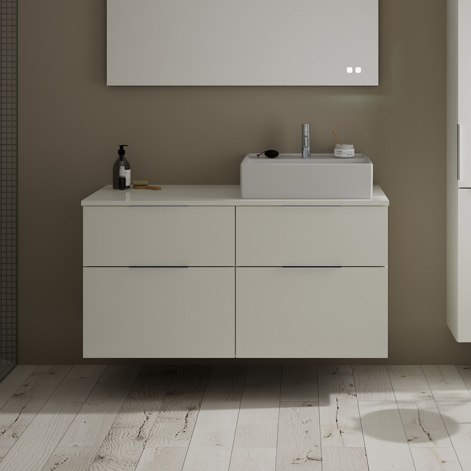 burgbad Eqio Waschtischkombination mit Keramik-Aufsatzwaschtisch 120 cm, rechts, mit Griff G0146