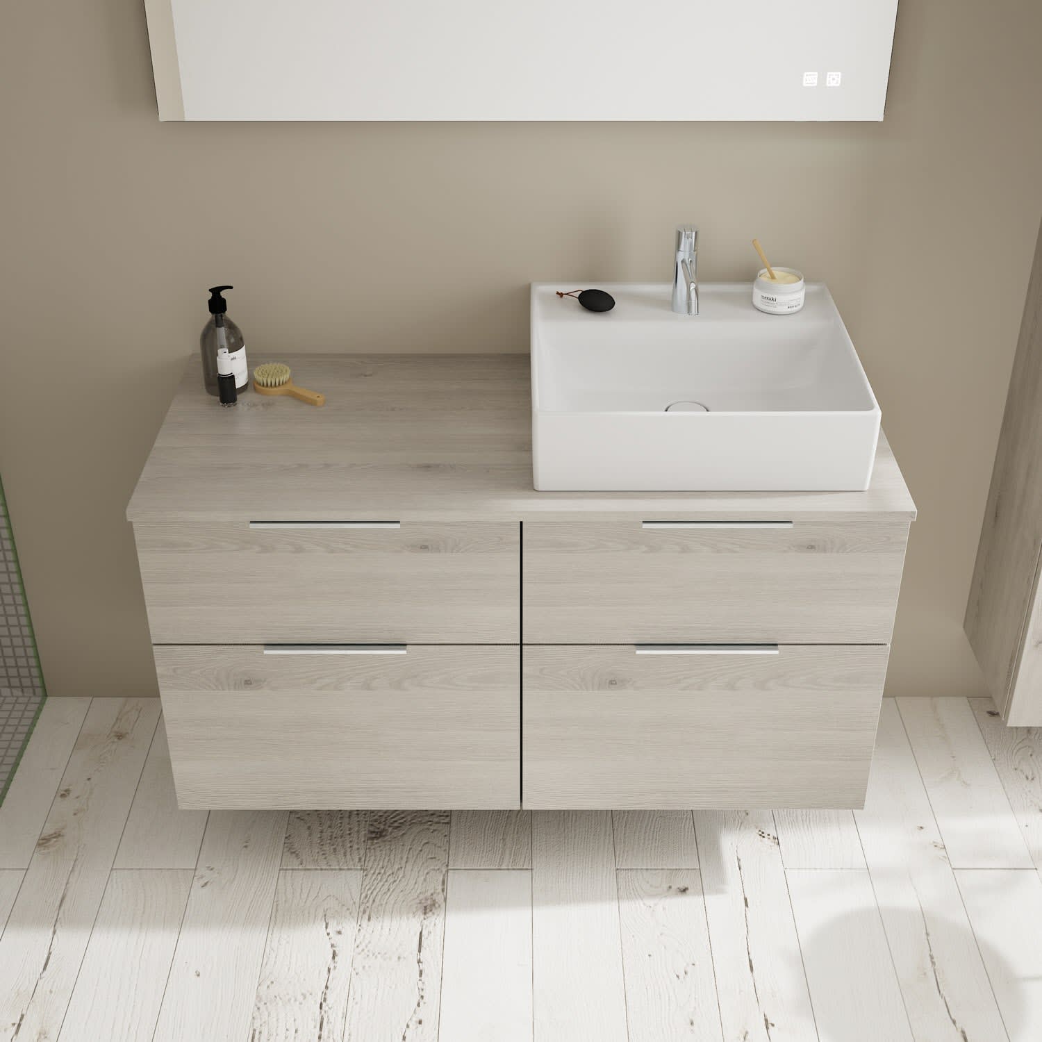 burgbad Eqio Waschtischkombination mit Keramik-Aufsatzwaschtisch 120 cm, rechts, mit Griff G0146