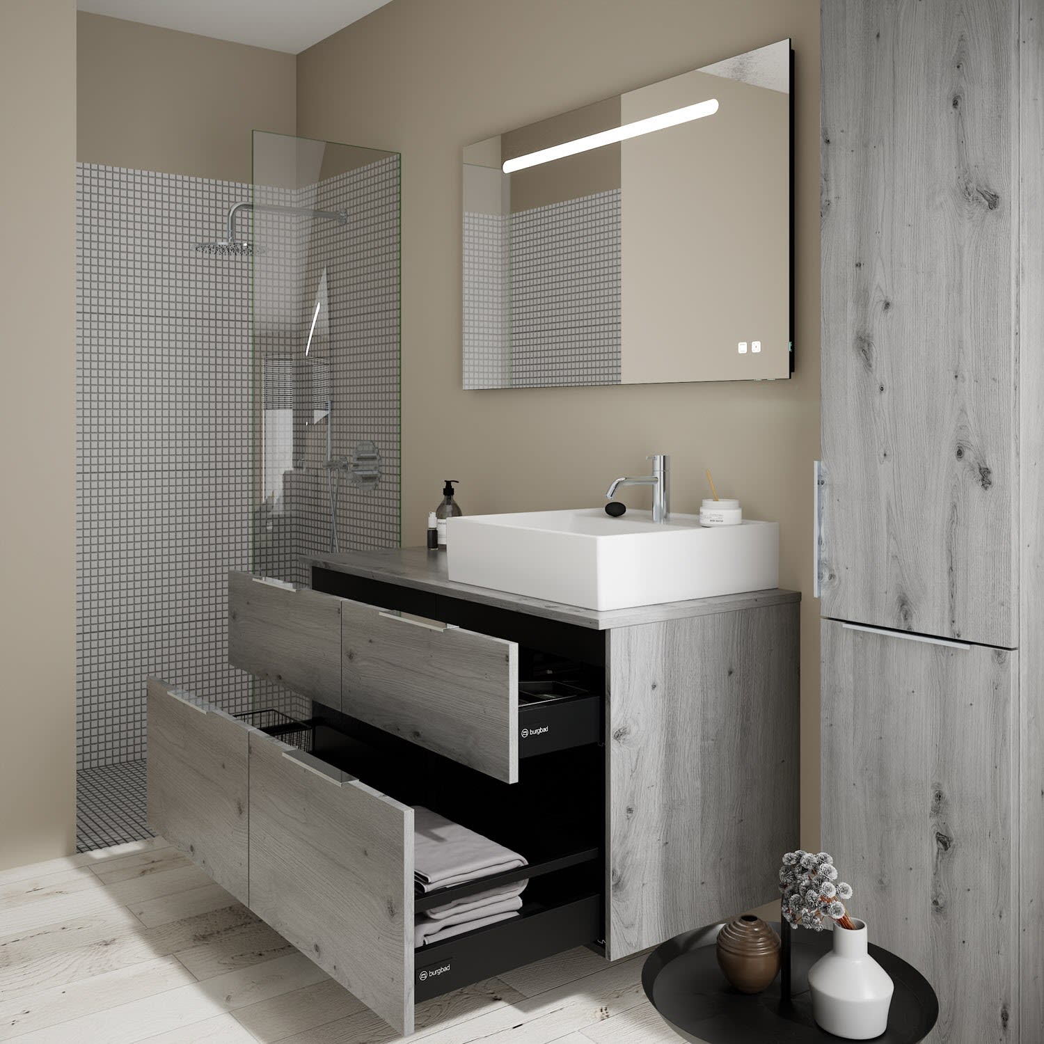 burgbad Eqio Waschtischkombination mit Keramik-Aufsatzwaschtisch 120 cm, rechts, mit Griff G0146