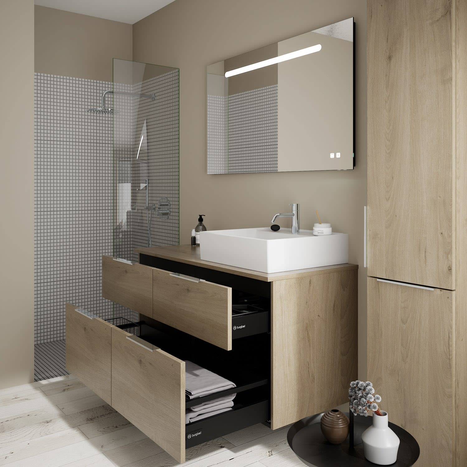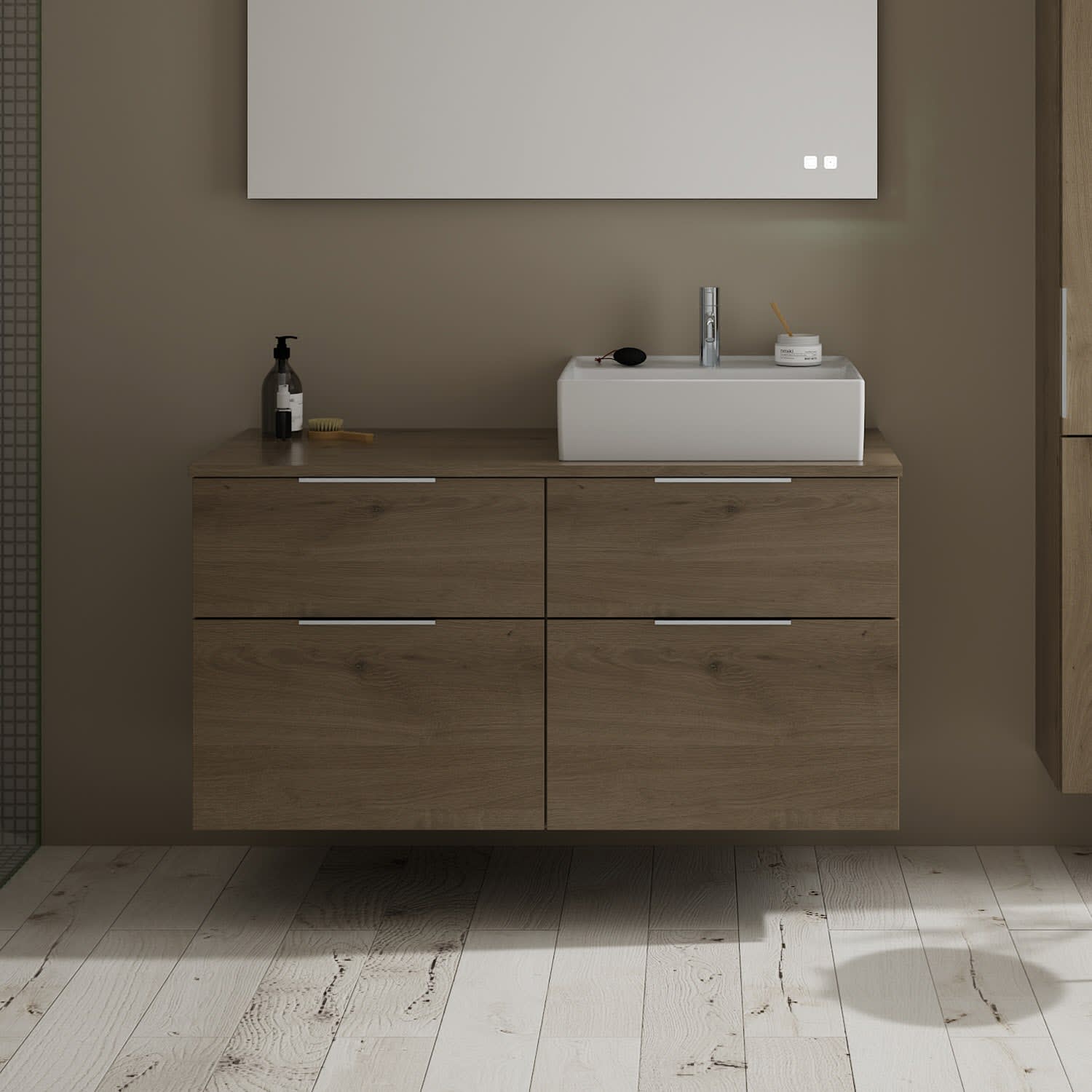 burgbad Eqio Waschtischkombination mit Keramik-Aufsatzwaschtisch 120 cm, rechts, mit Griff G0146