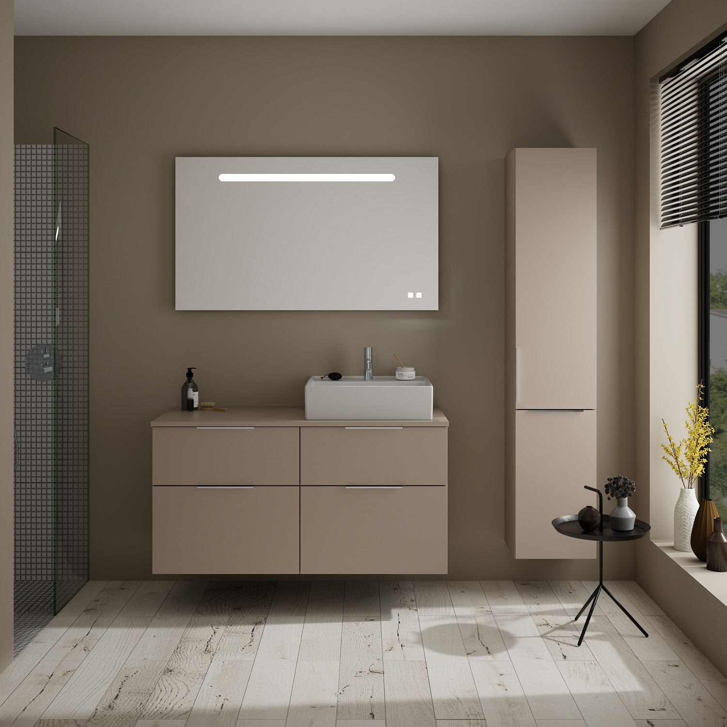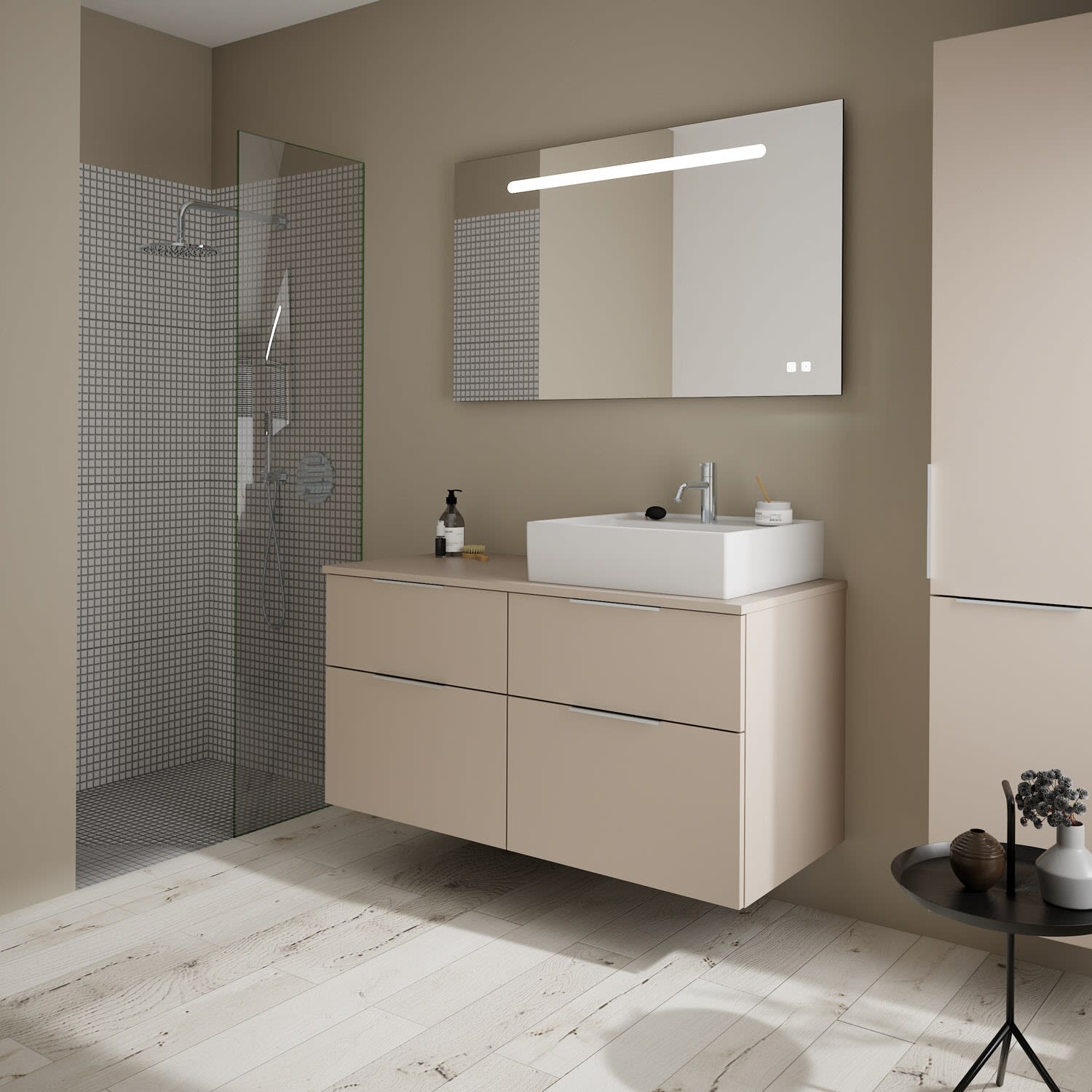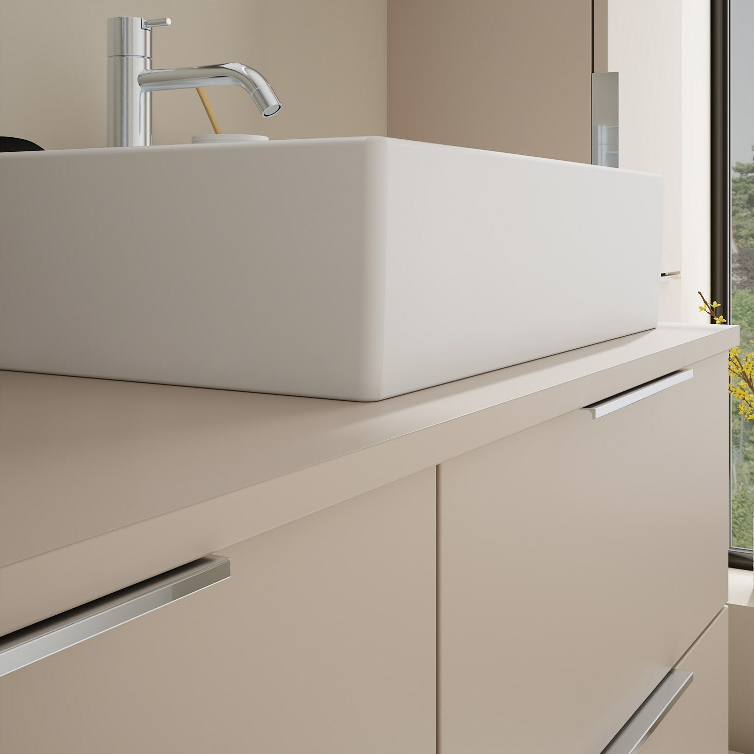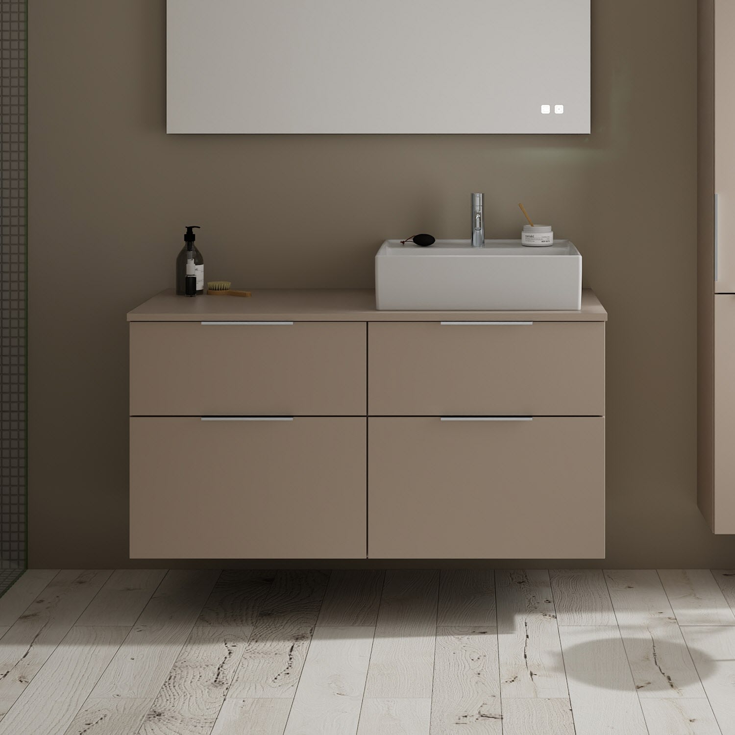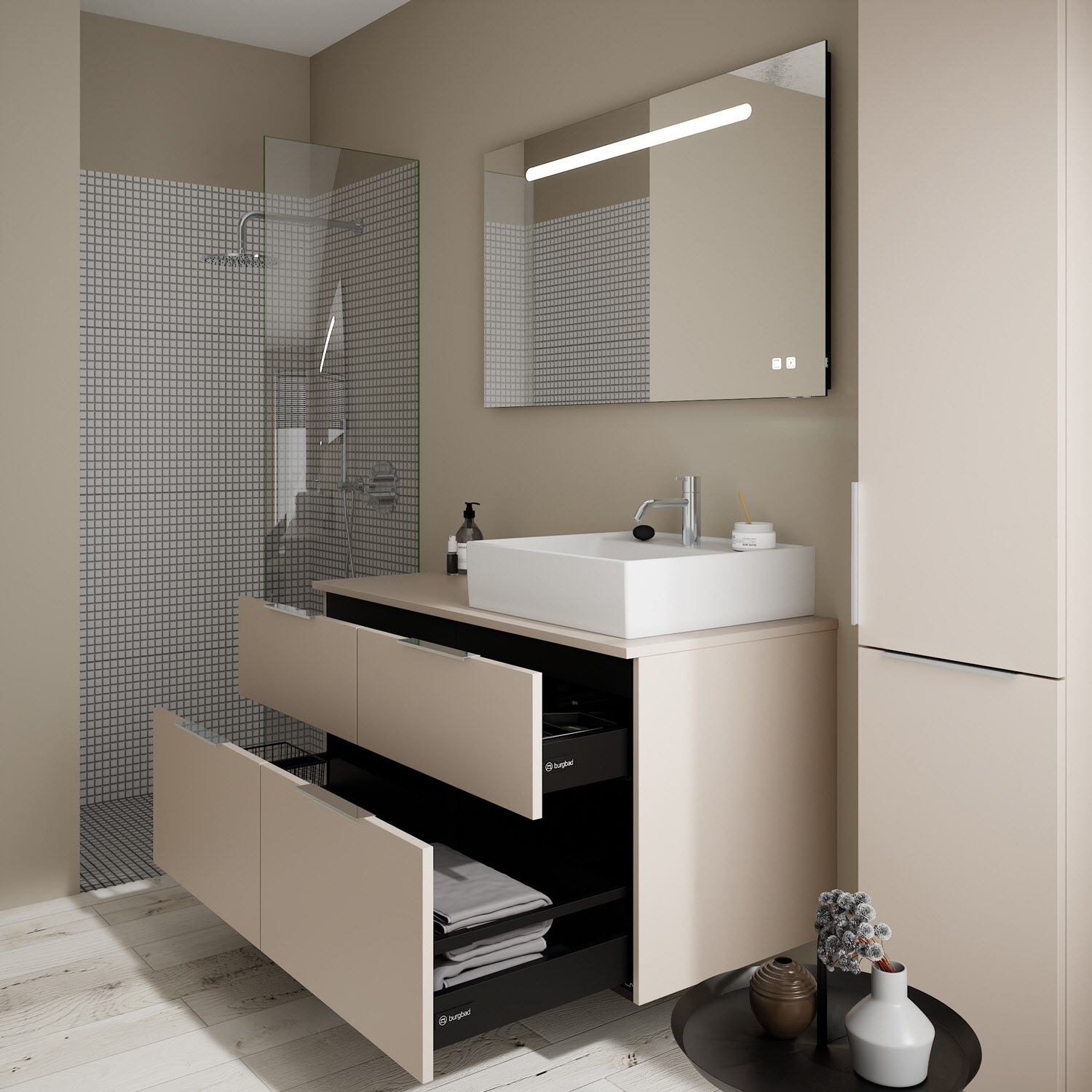 burgbad Eqio Waschtischkombination mit Keramik-Aufsatzwaschtisch 120 cm, rechts, mit Griff G0146