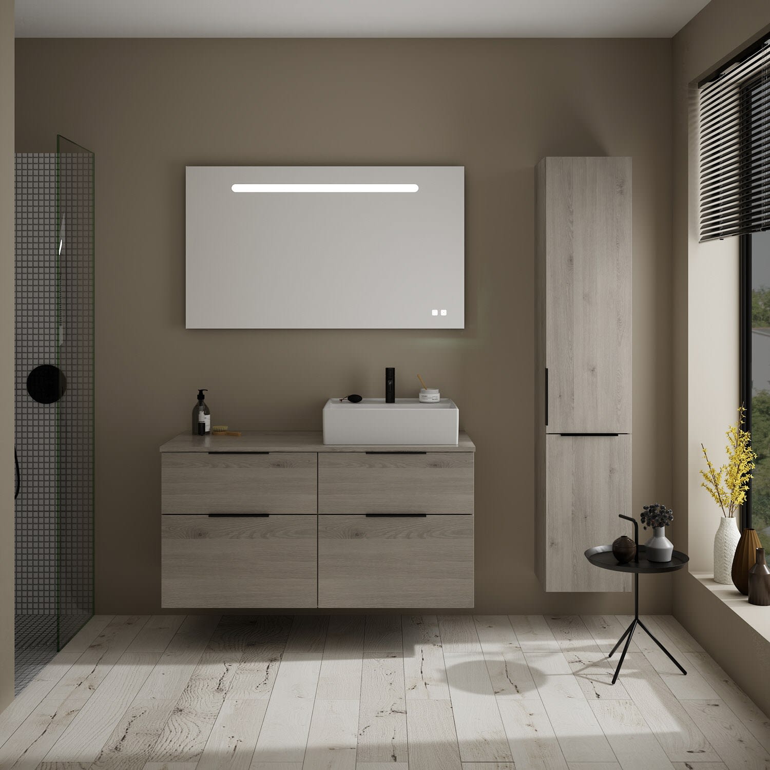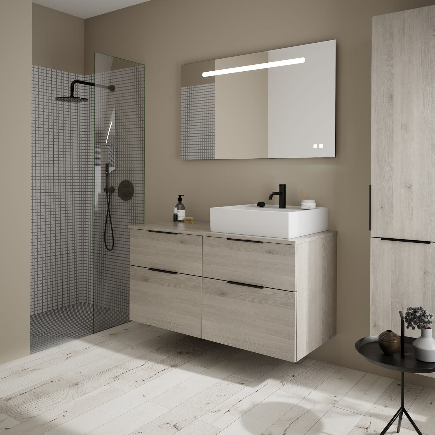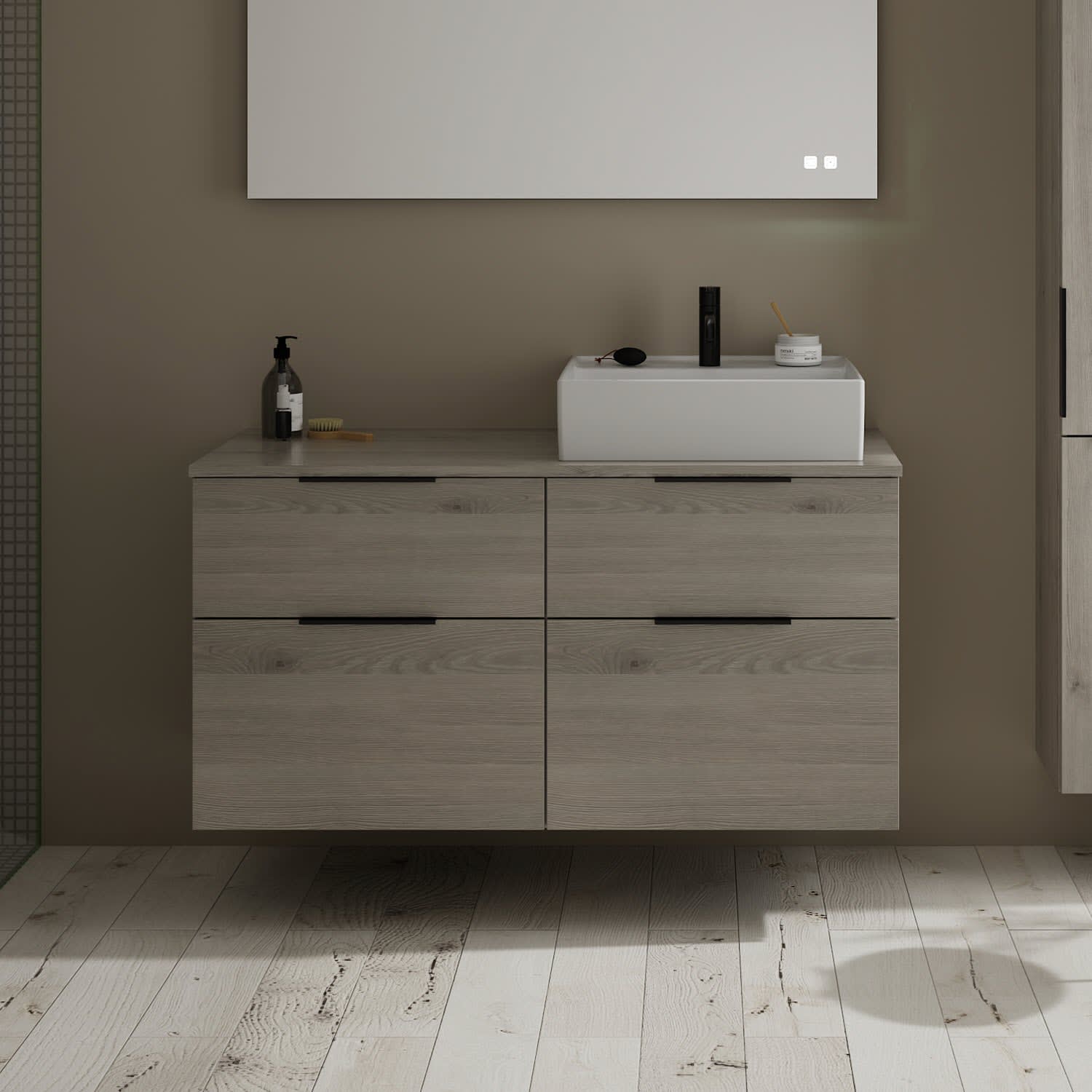 burgbad Eqio Waschtischkombination mit Keramik-Aufsatzwaschtisch 120 cm, rechts, mit Griff G0200