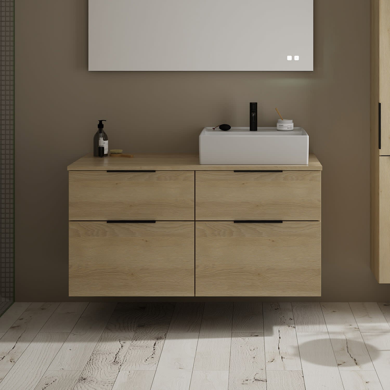 burgbad Eqio Waschtischkombination mit Keramik-Aufsatzwaschtisch 120 cm, rechts, mit Griff G0200