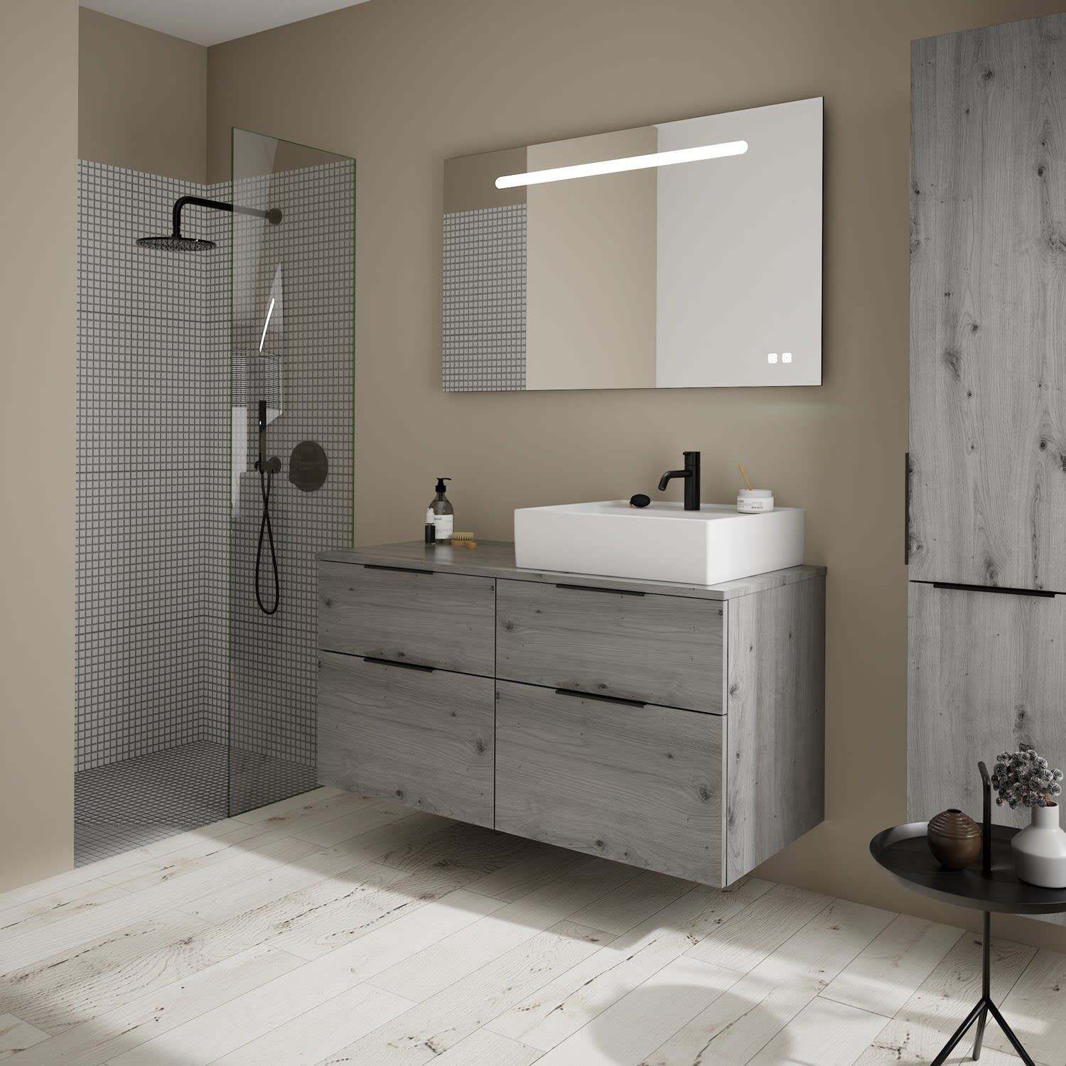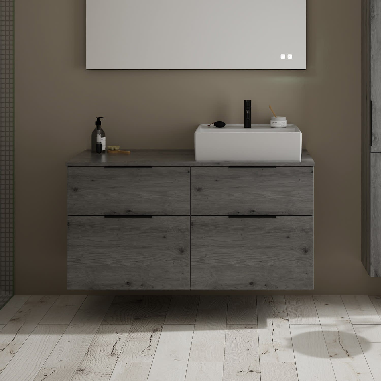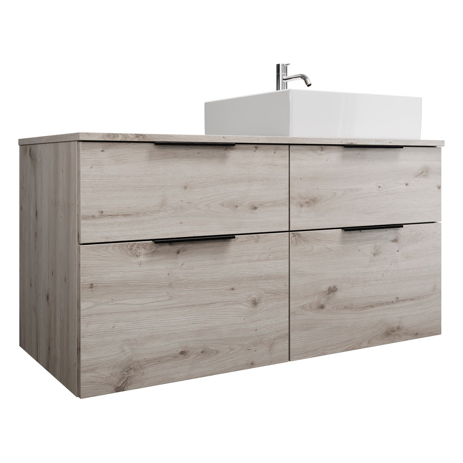 burgbad Eqio Waschtischkombination mit Keramik-Aufsatzwaschtisch 120 cm, rechts, mit Griff G0200