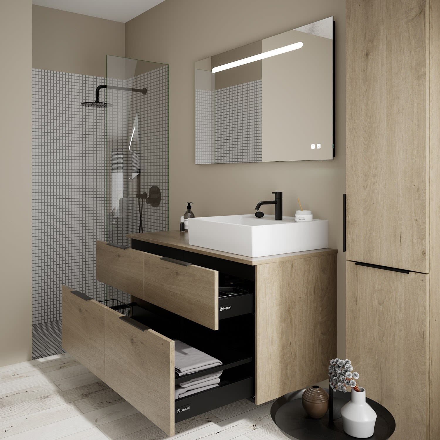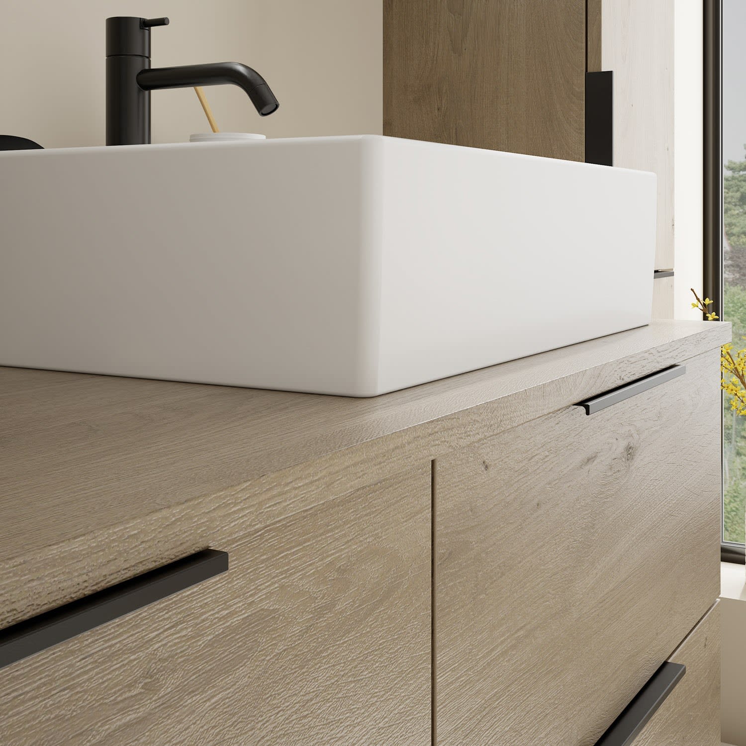 burgbad Eqio Waschtischkombination mit Keramik-Aufsatzwaschtisch 120 cm, rechts, mit Griff G0200
