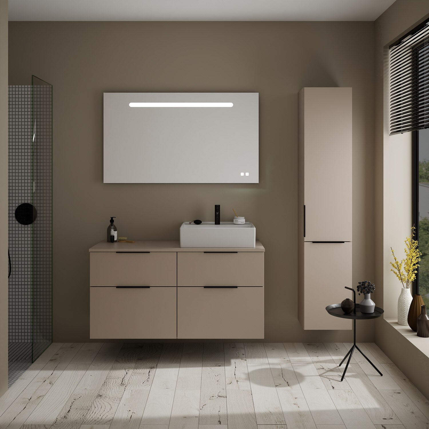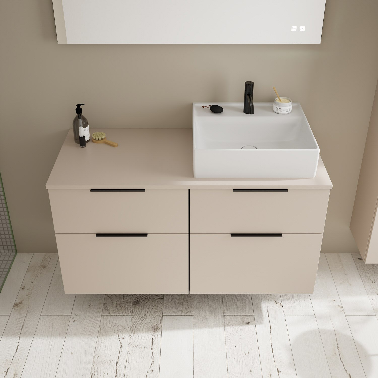 burgbad Eqio Waschtischkombination mit Keramik-Aufsatzwaschtisch 120 cm, rechts, mit Griff G0200
