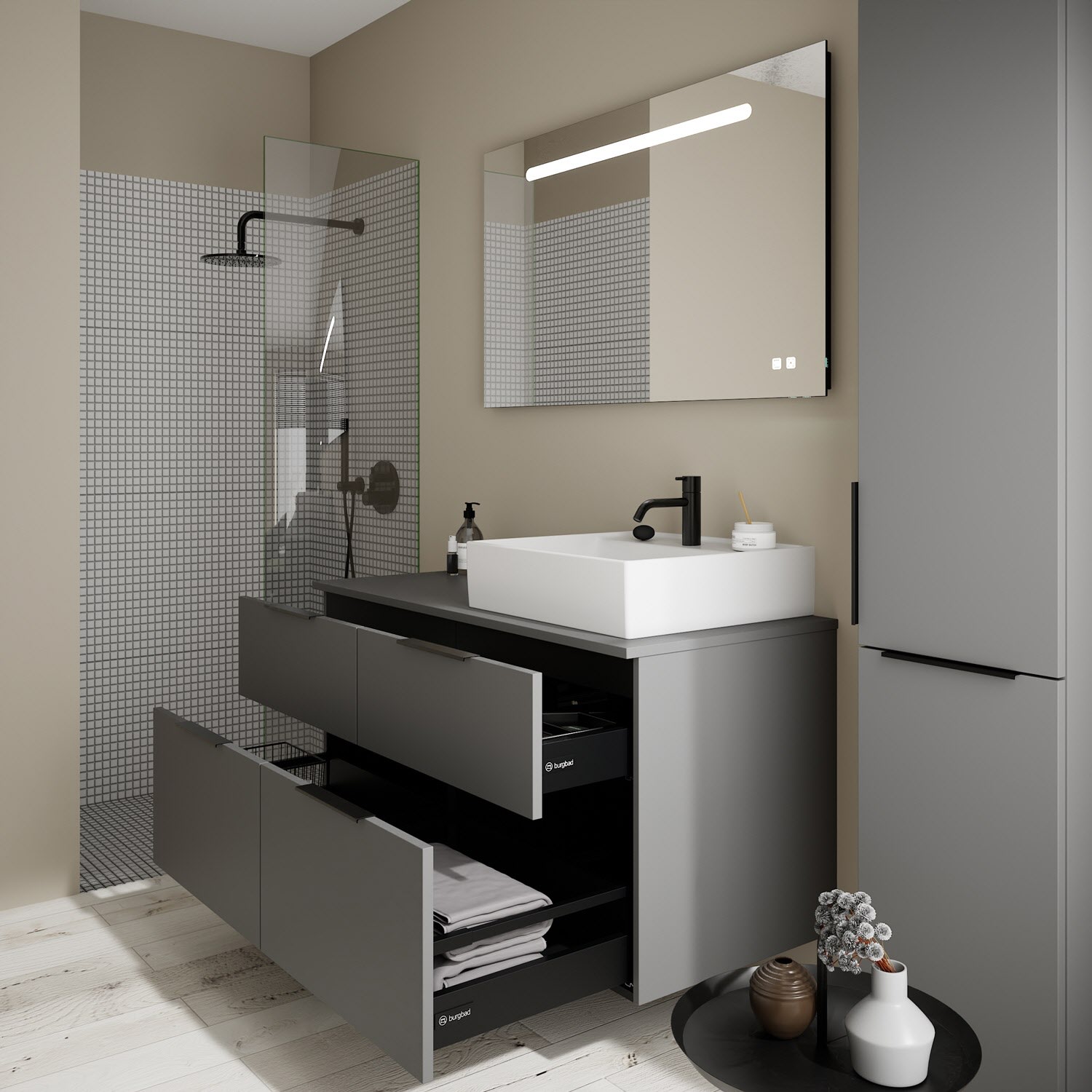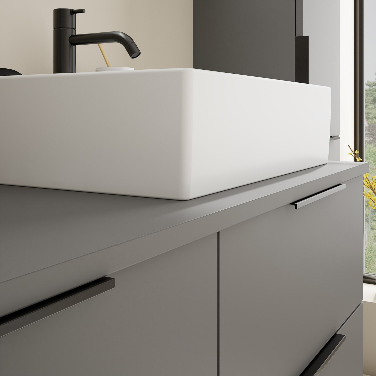 burgbad Eqio Waschtischkombination mit Keramik-Aufsatzwaschtisch 120 cm, rechts, mit Griff G0200