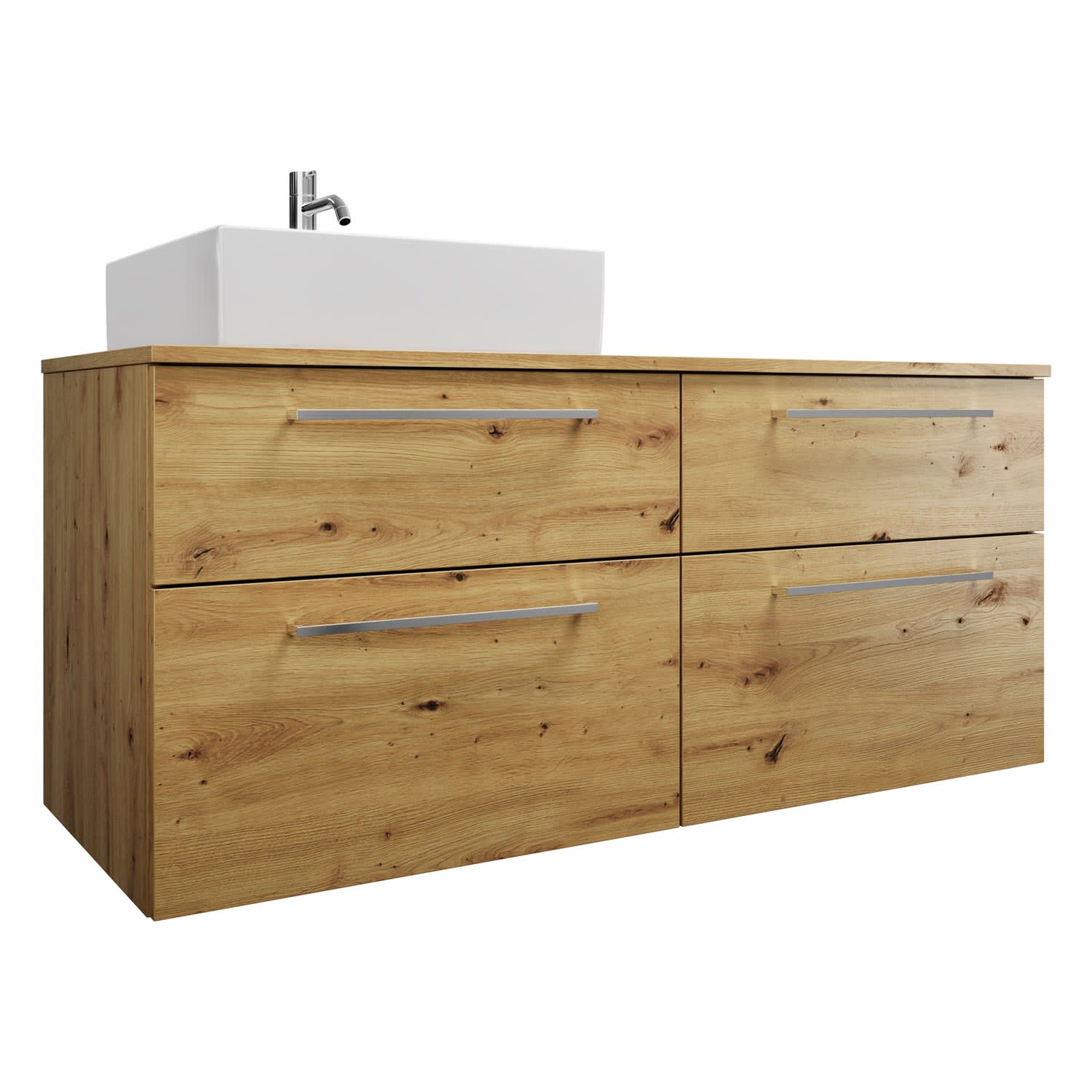 burgbad Eqio Waschtischkombination mit Keramik-Aufsatzwaschtisch 140 cm, links, mit Stangengriff P95