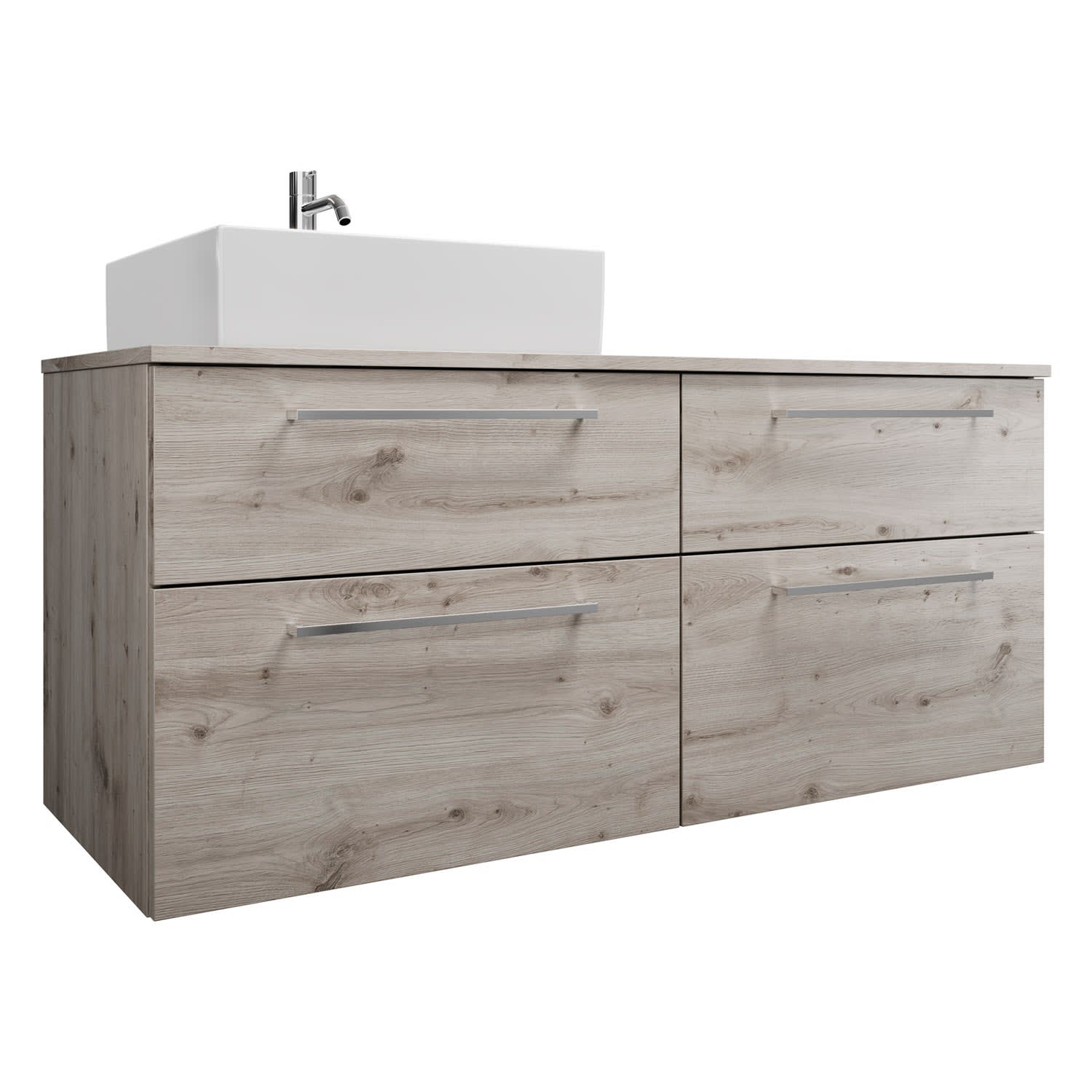 burgbad Eqio Waschtischkombination mit Keramik-Aufsatzwaschtisch 140 cm, links, mit Stangengriff P95