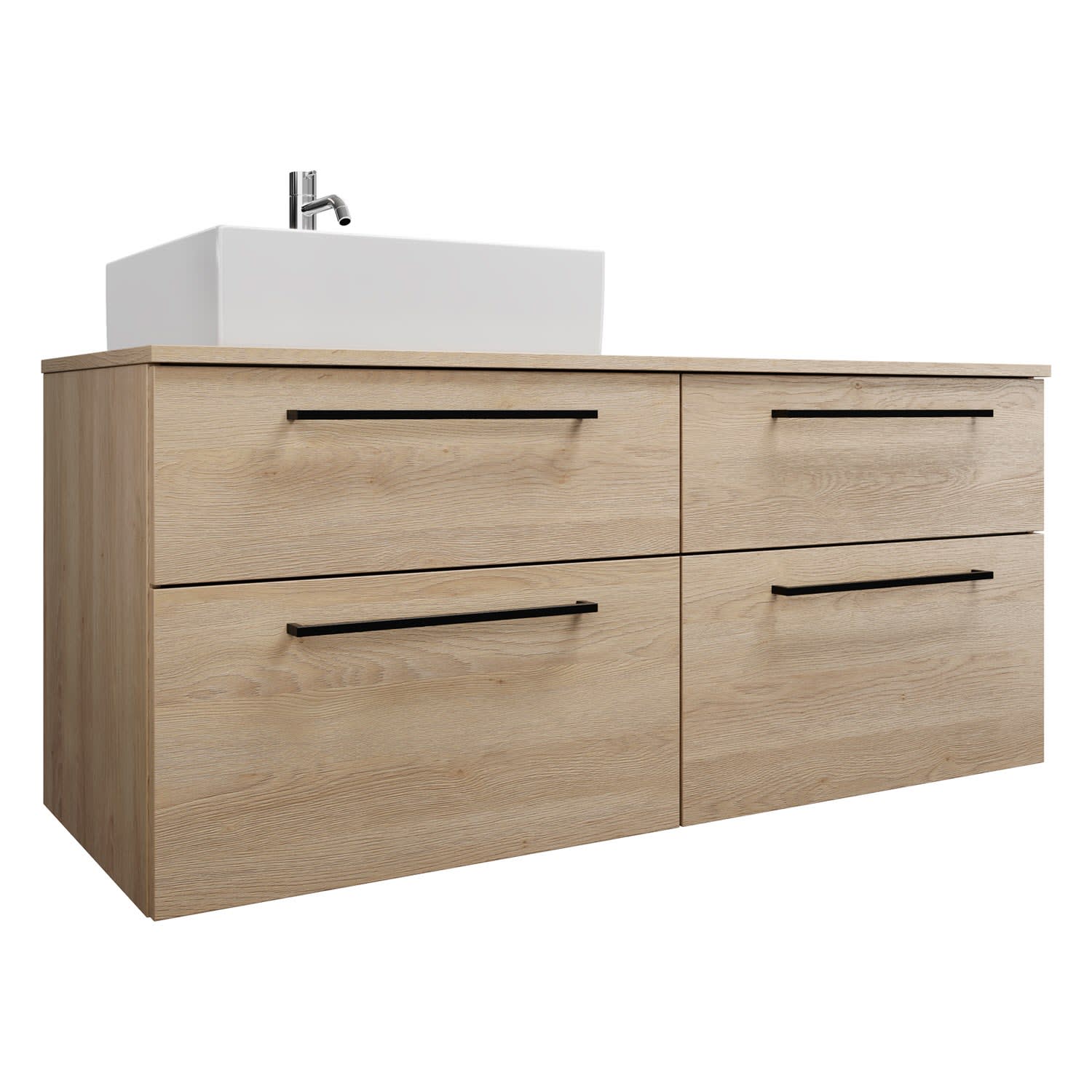 burgbad Eqio Waschtischkombination mit Keramik-Aufsatzwaschtisch 140 cm, links, mit Stangengriff G0234
