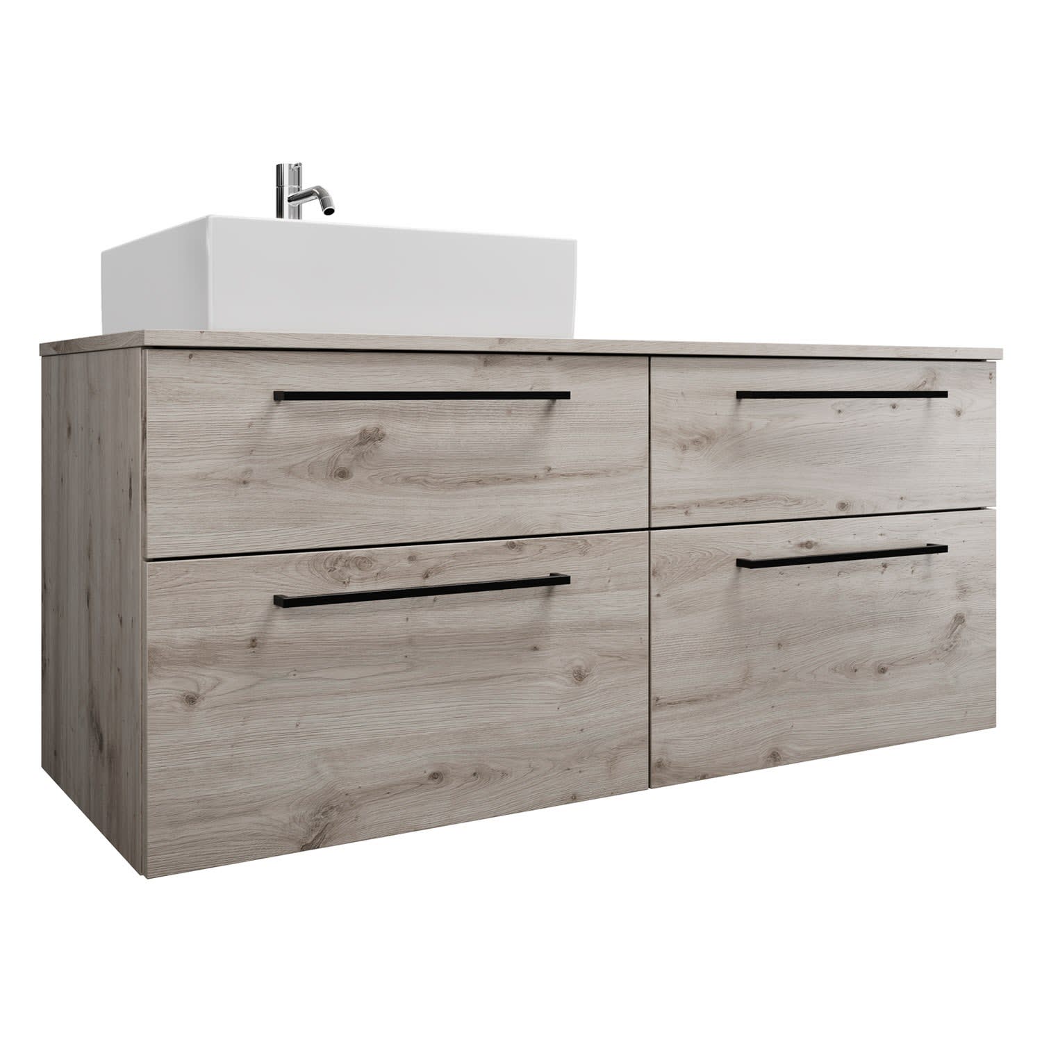 burgbad Eqio Waschtischkombination mit Keramik-Aufsatzwaschtisch 140 cm, links, mit Stangengriff G0234
