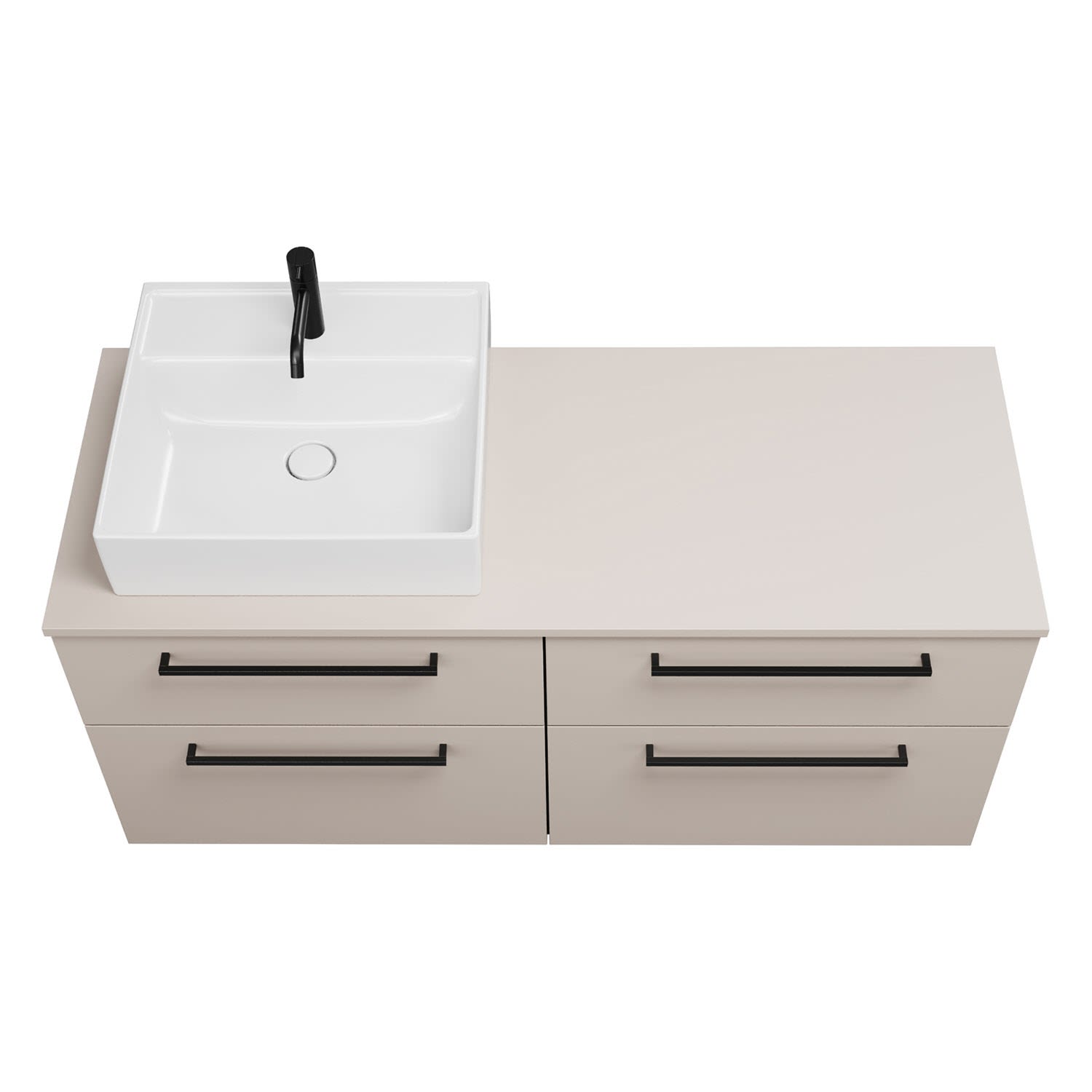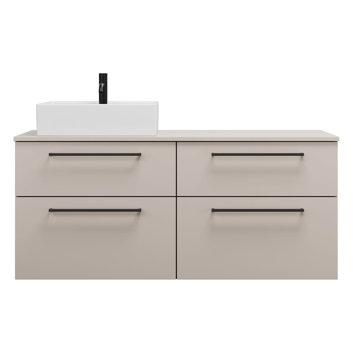 burgbad Eqio Waschtischkombination mit Keramik-Aufsatzwaschtisch 140 cm, links, mit Stangengriff G0234