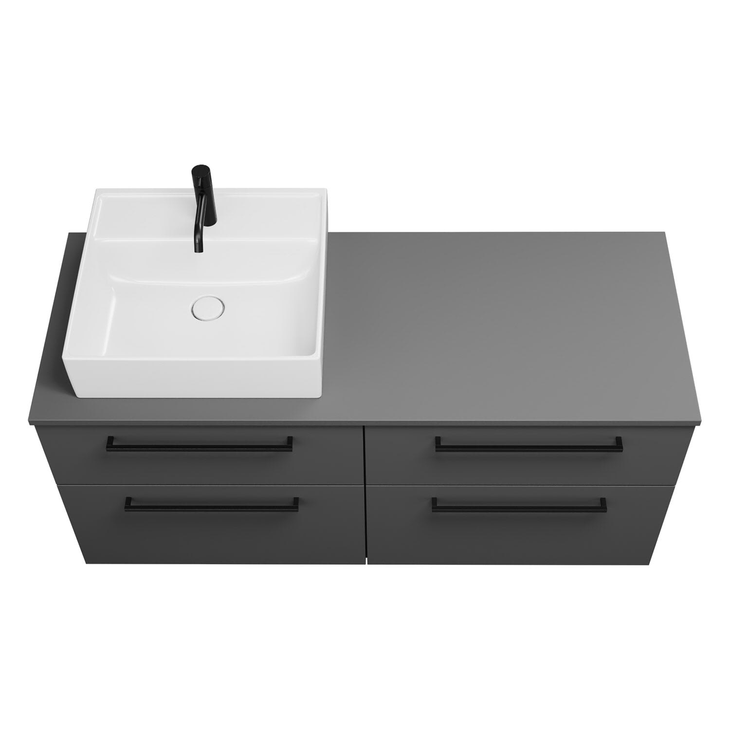 burgbad Eqio Waschtischkombination mit Keramik-Aufsatzwaschtisch 140 cm, links, mit Stangengriff G0234