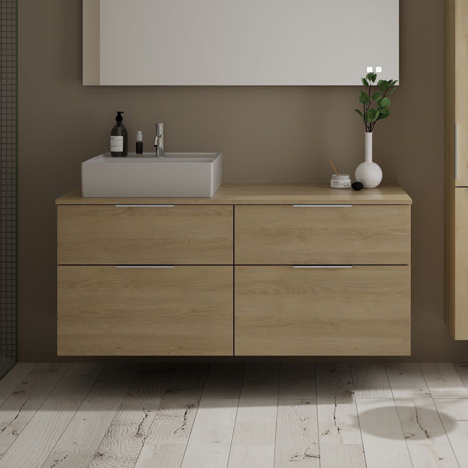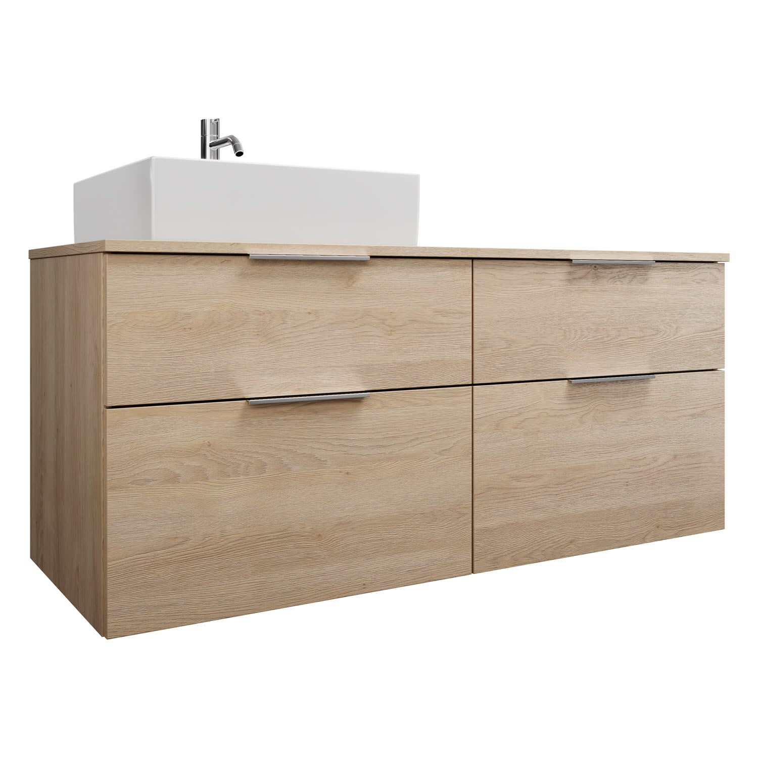 burgbad Eqio Waschtischkombination mit Keramik-Aufsatzwaschtisch 140 cm, links, mit Griff G0146