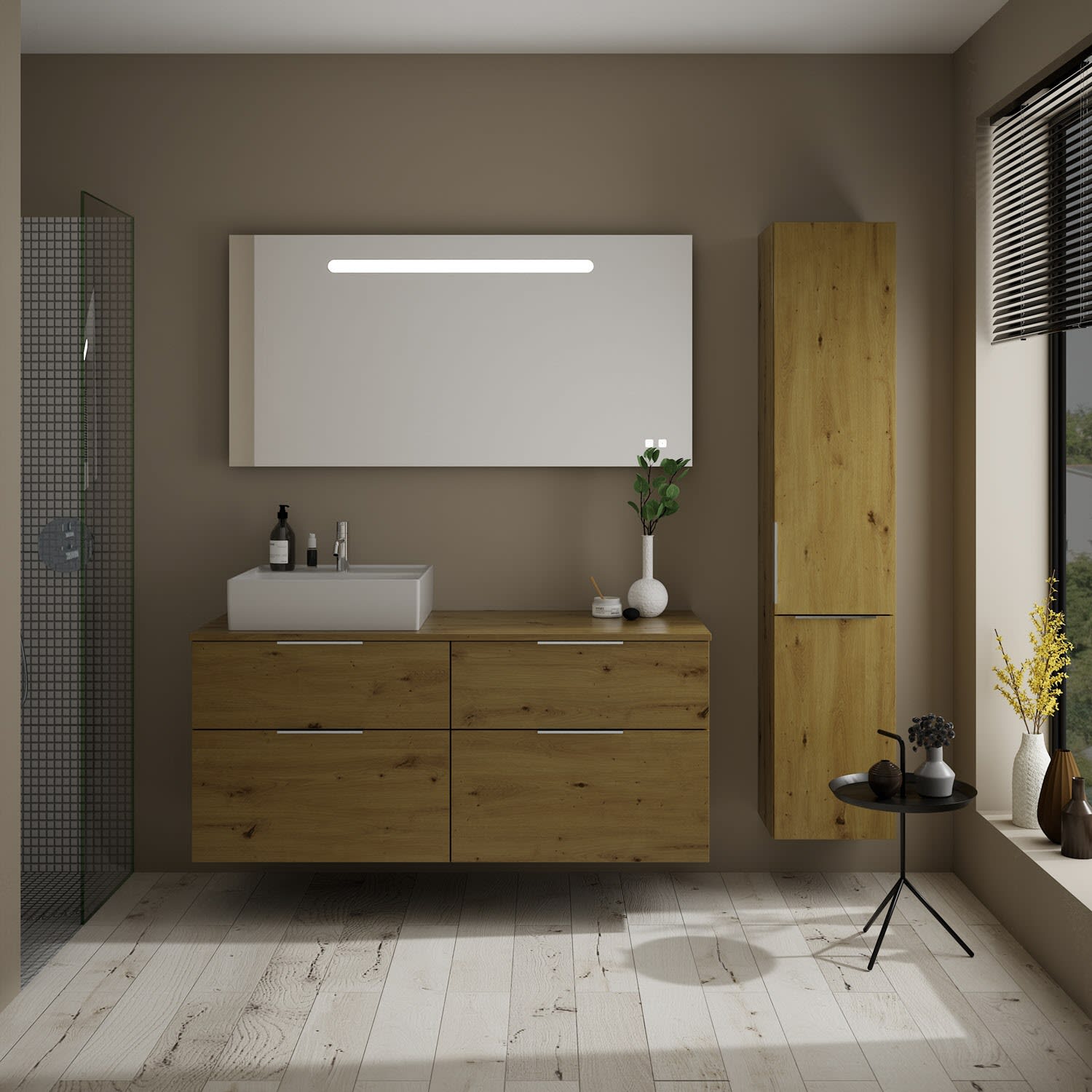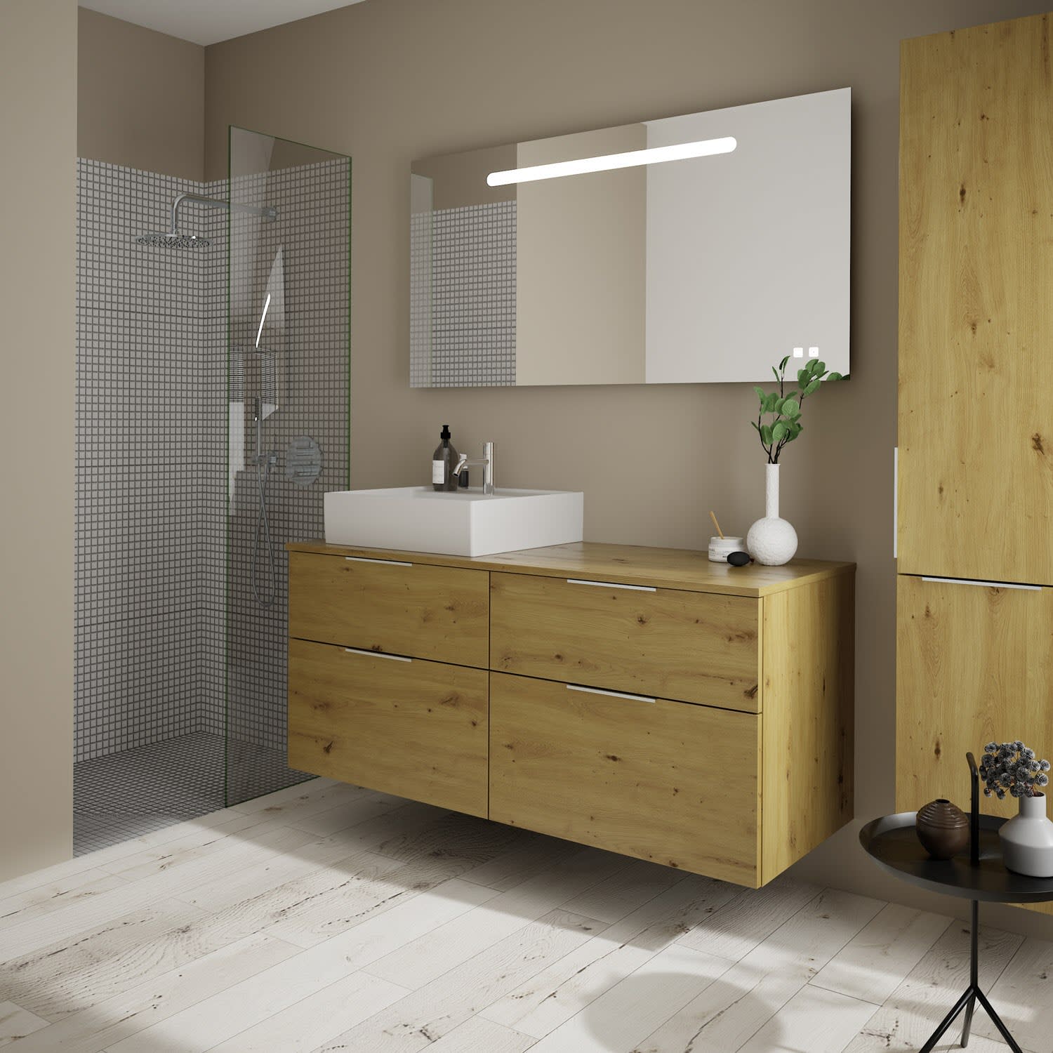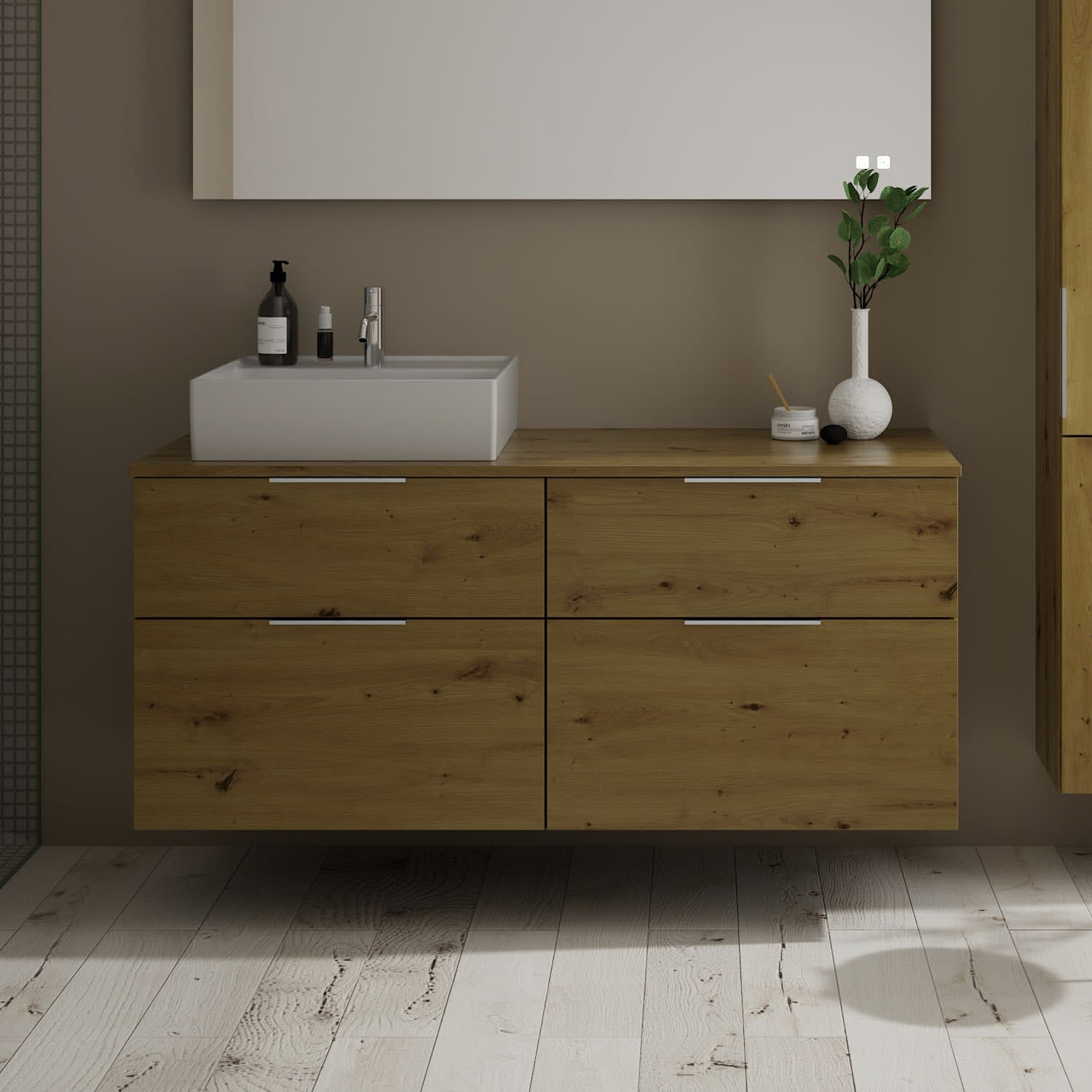 burgbad Eqio Waschtischkombination mit Keramik-Aufsatzwaschtisch 140 cm, links, mit Griff G0146