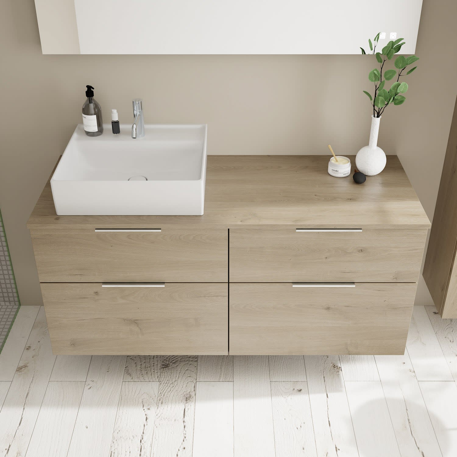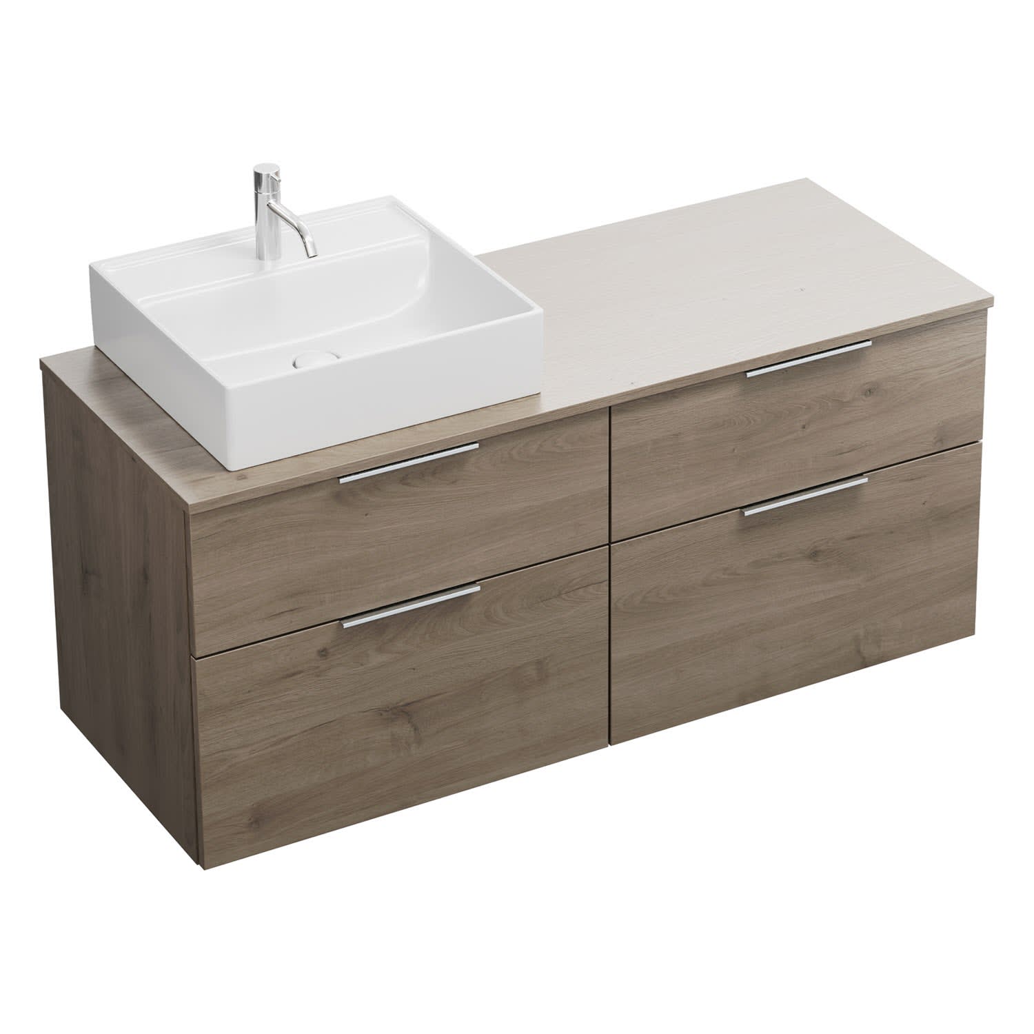 burgbad Eqio Waschtischkombination mit Keramik-Aufsatzwaschtisch 140 cm, links, mit Griff G0146