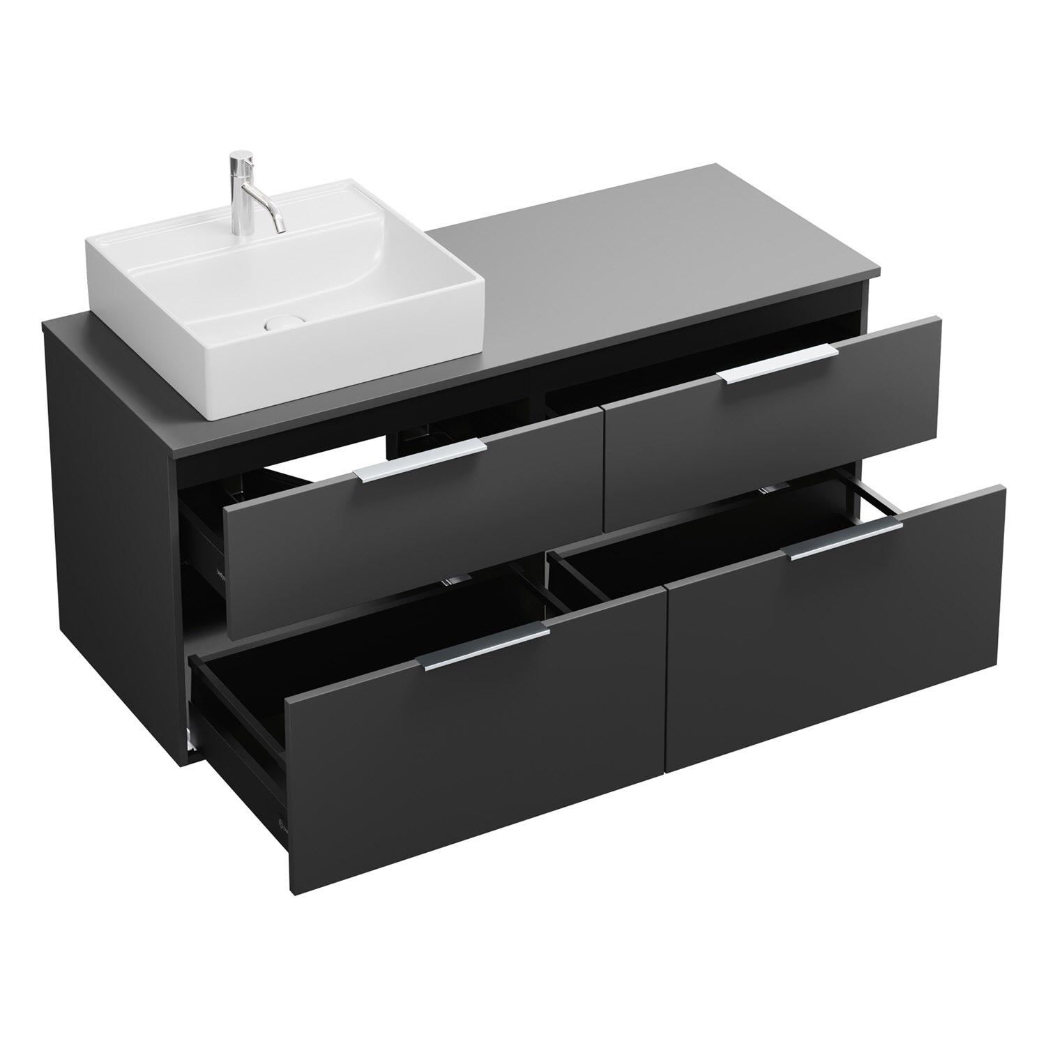 burgbad Eqio Waschtischkombination mit Keramik-Aufsatzwaschtisch 140 cm, links, mit Griff G0146
