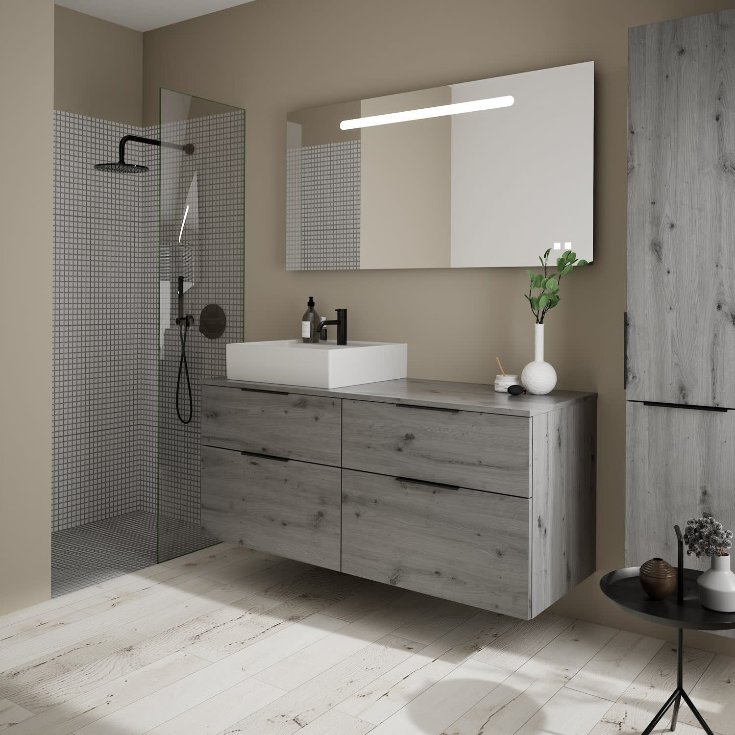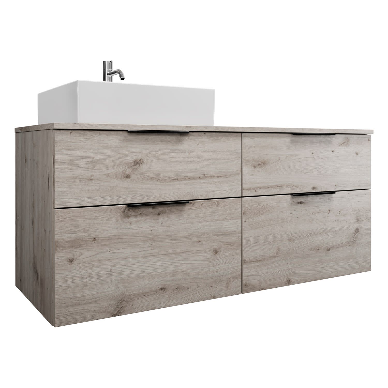 burgbad Eqio Waschtischkombination mit Keramik-Aufsatzwaschtisch 140 cm, links, mit Griff G0200