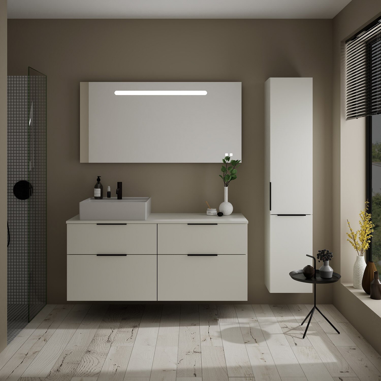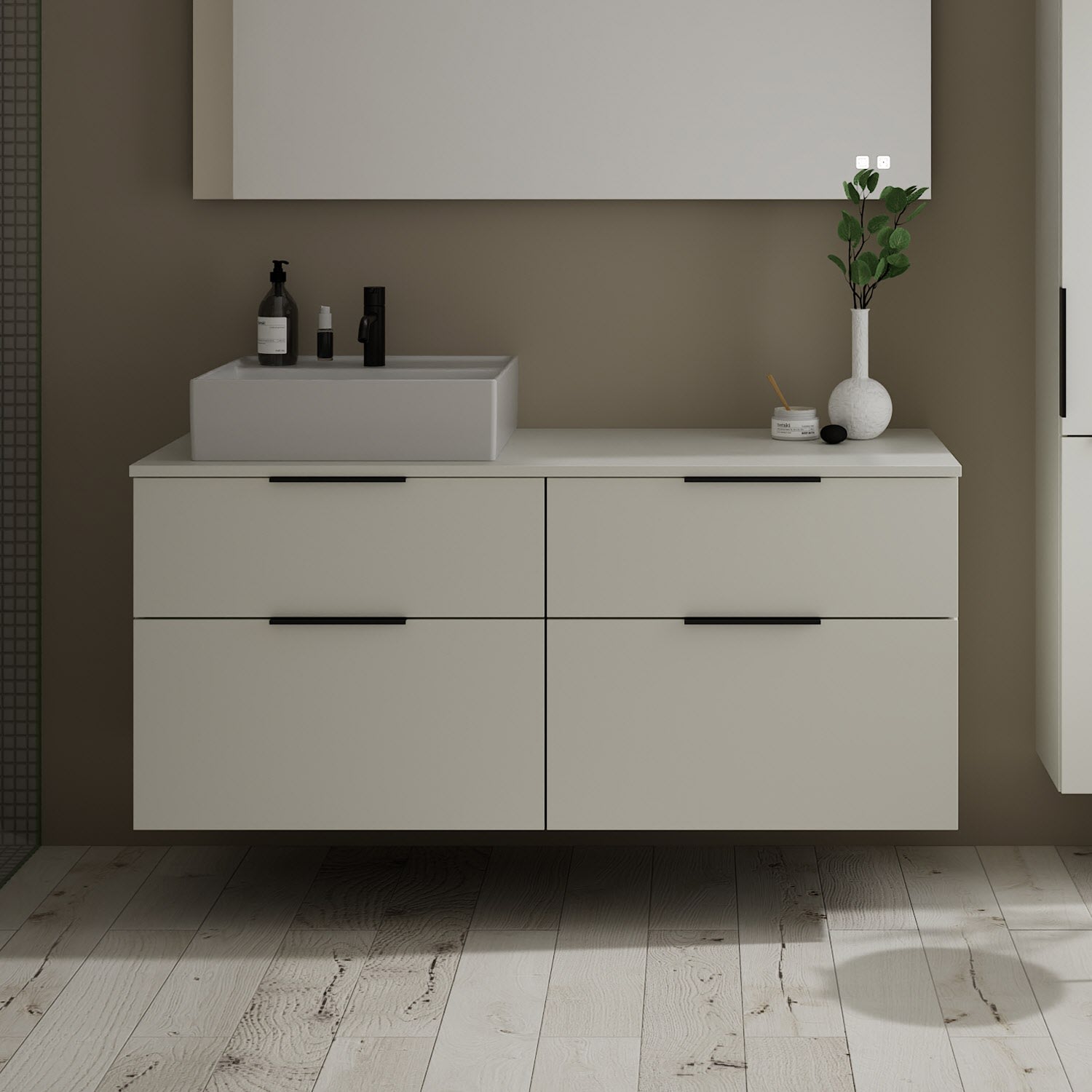 burgbad Eqio Waschtischkombination mit Keramik-Aufsatzwaschtisch 140 cm, links, mit Griff G0200