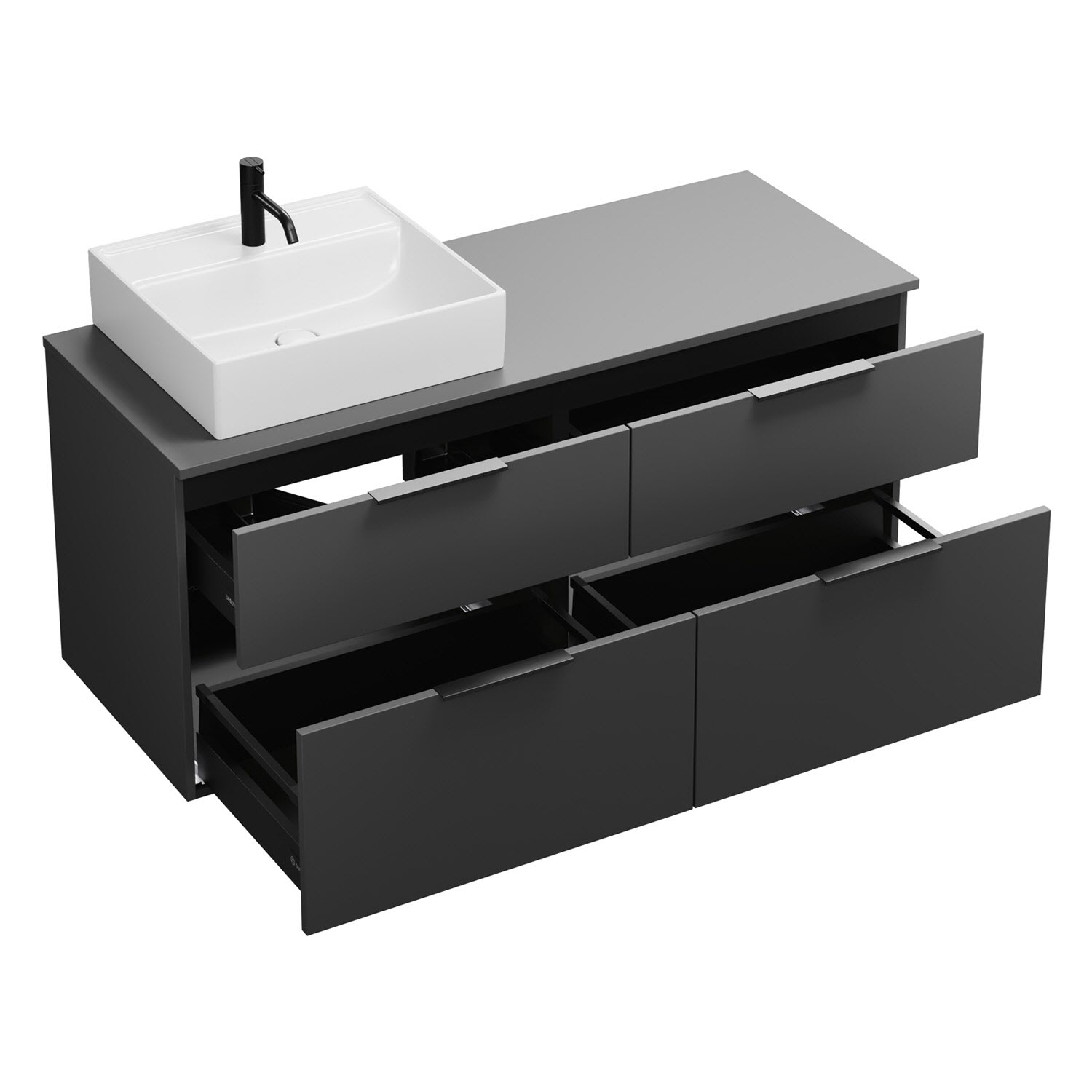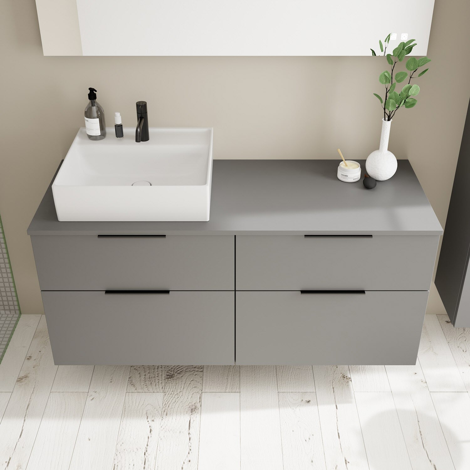 burgbad Eqio Waschtischkombination mit Keramik-Aufsatzwaschtisch 140 cm, links, mit Griff G0200