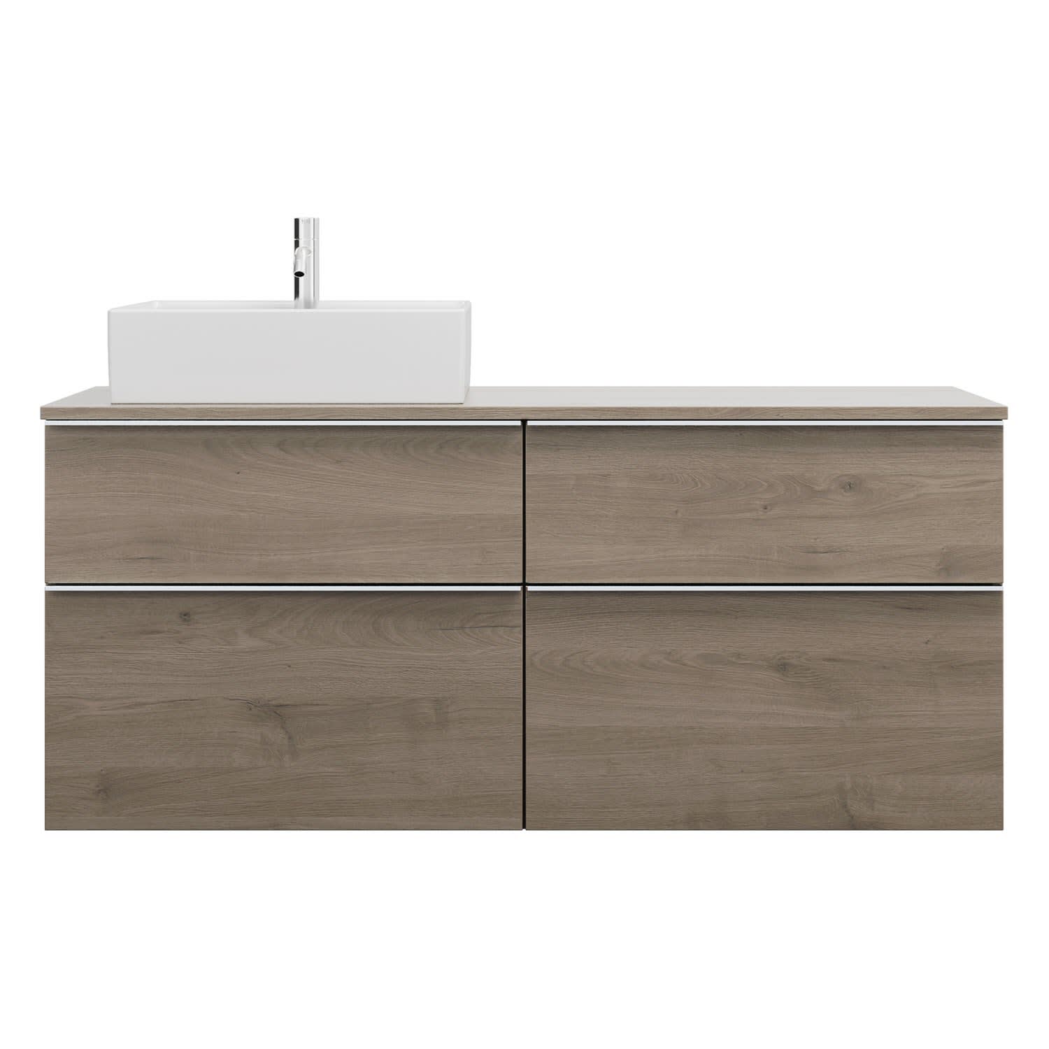 burgbad Eqio Waschtischkombination mit Keramik-Aufsatzwaschtisch 140 cm, links, mit Griffleiste G0251