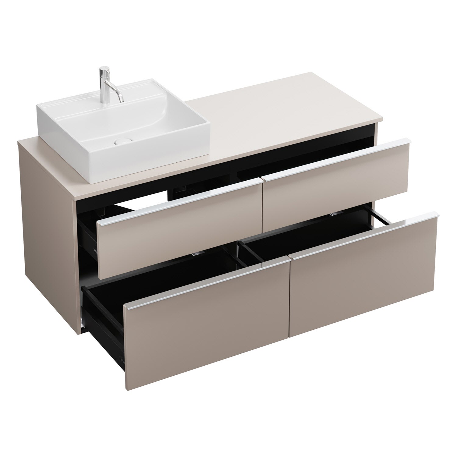 burgbad Eqio Waschtischkombination mit Keramik-Aufsatzwaschtisch 140 cm, links, mit Griffleiste G0251