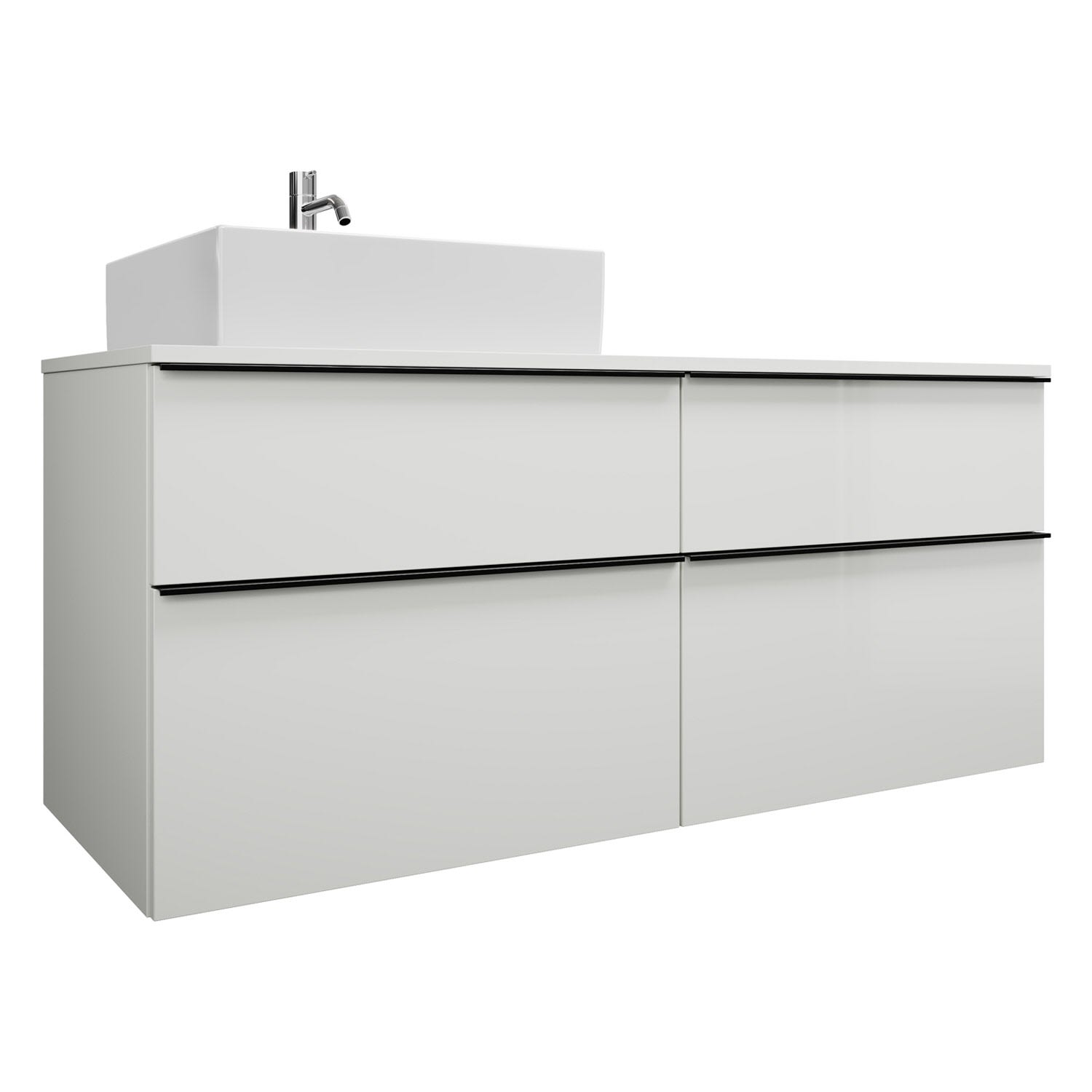 burgbad Eqio Waschtischkombination mit Keramik-Aufsatzwaschtisch 140 cm, links, mit Griffleiste G0252