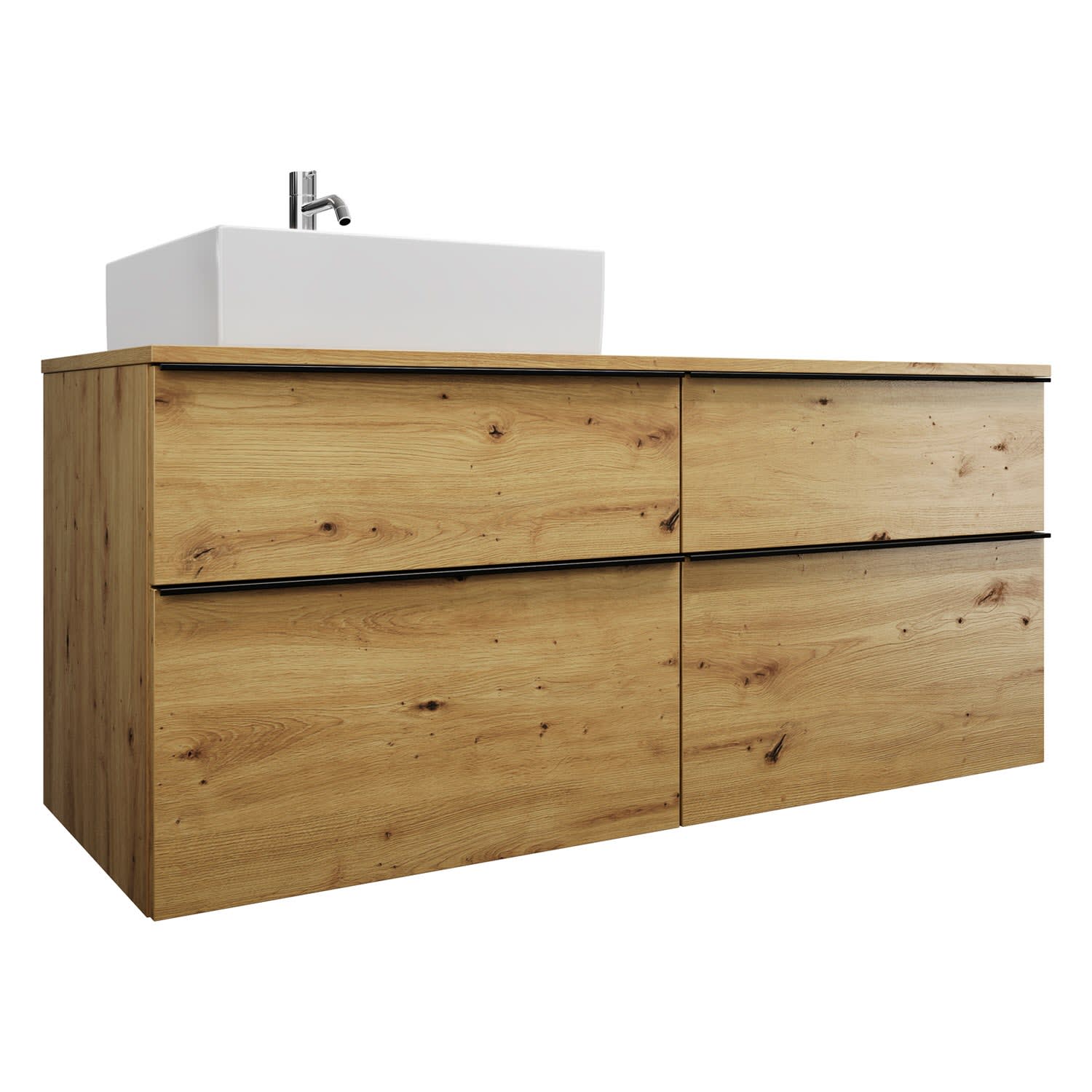 burgbad Eqio Waschtischkombination mit Keramik-Aufsatzwaschtisch 140 cm, links, mit Griffleiste G0252