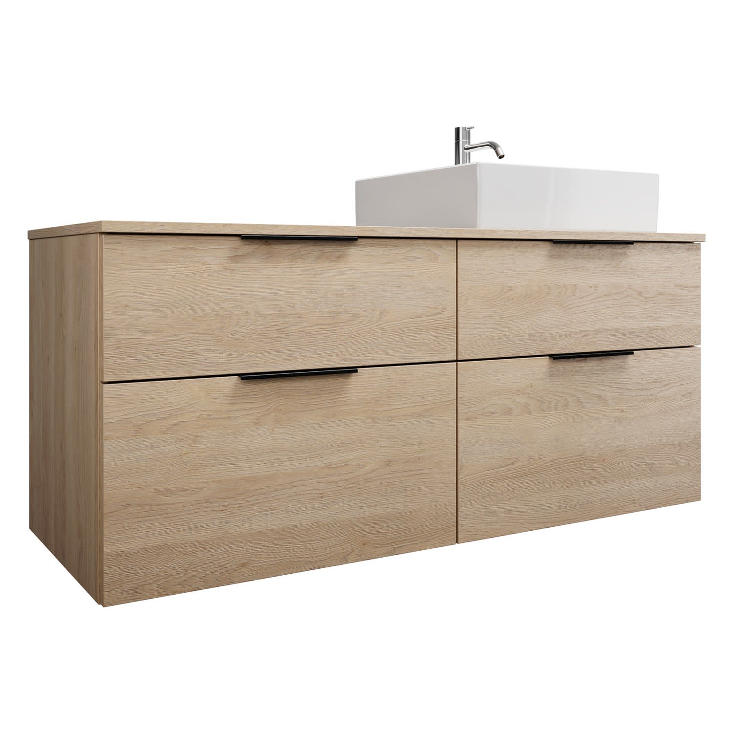 burgbad Eqio Waschtischkombination mit Keramik-Aufsatzwaschtisch 140 cm, rechts, mit Griff G0200