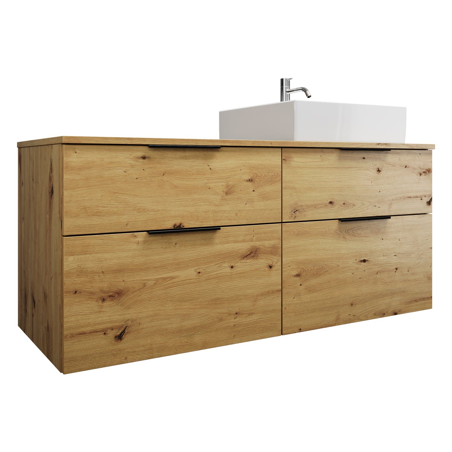 burgbad Eqio Waschtischkombination mit Keramik-Aufsatzwaschtisch 140 cm, rechts, mit Griff G0200
