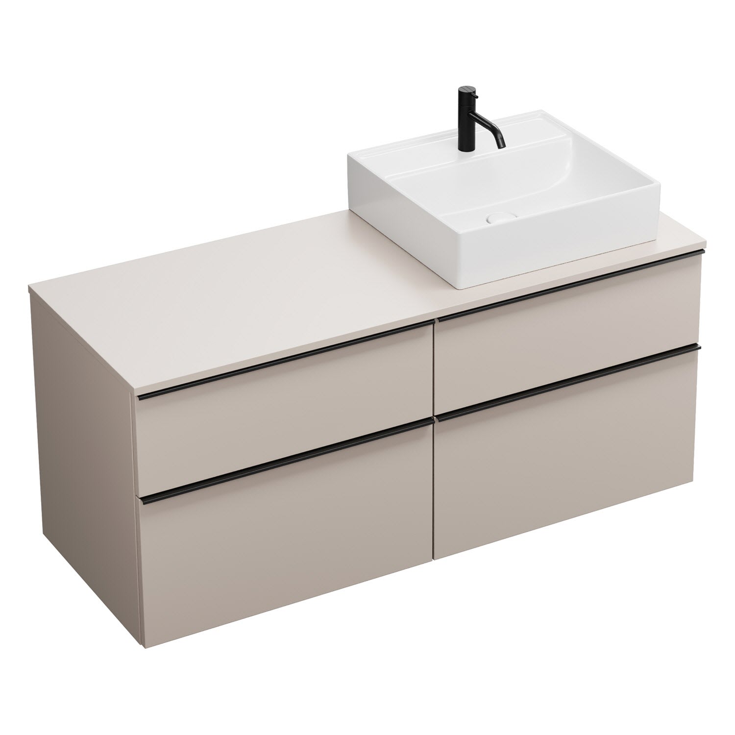 burgbad Eqio Waschtischkombination mit Keramik-Aufsatzwaschtisch 140 cm, rechts, mit Griffleiste G0252