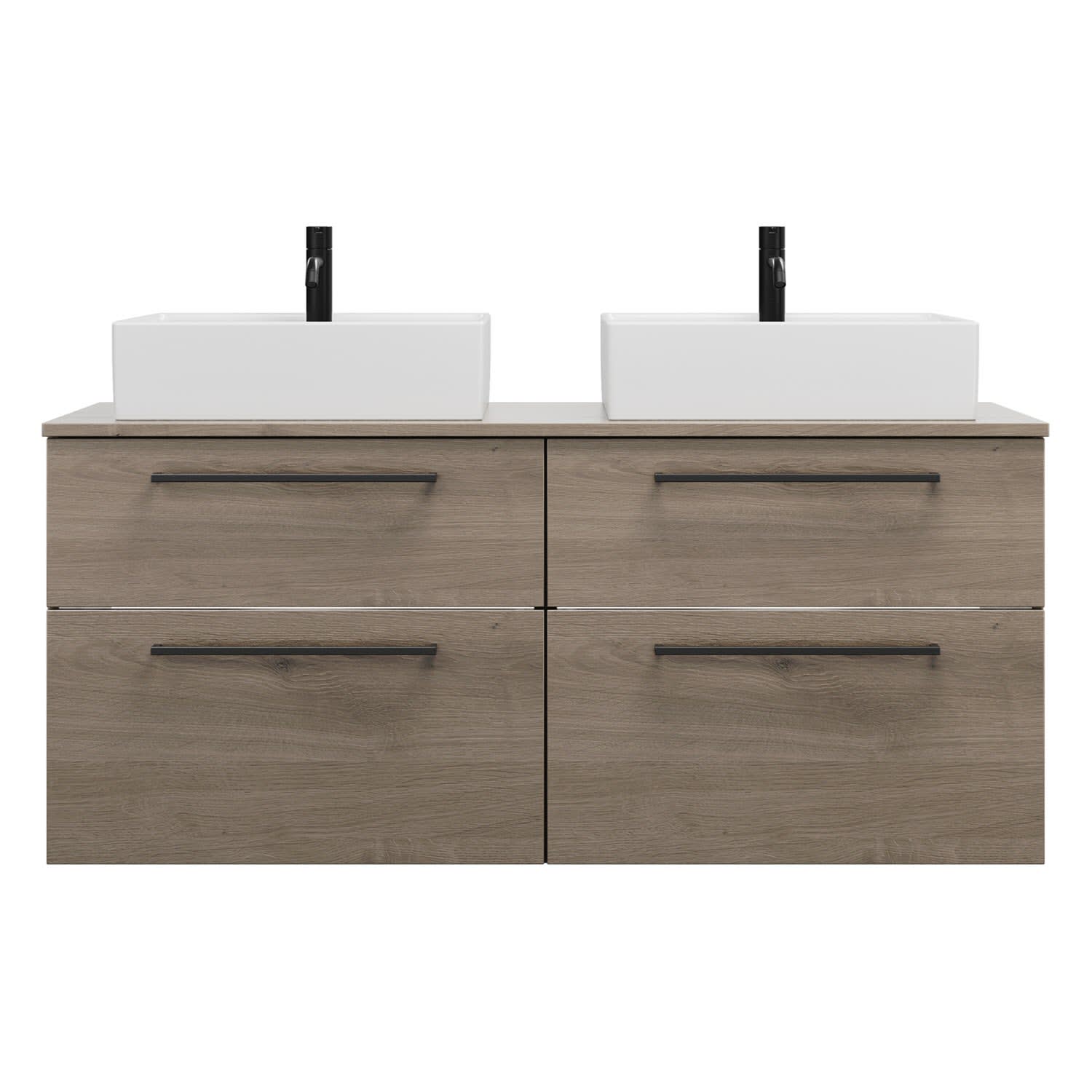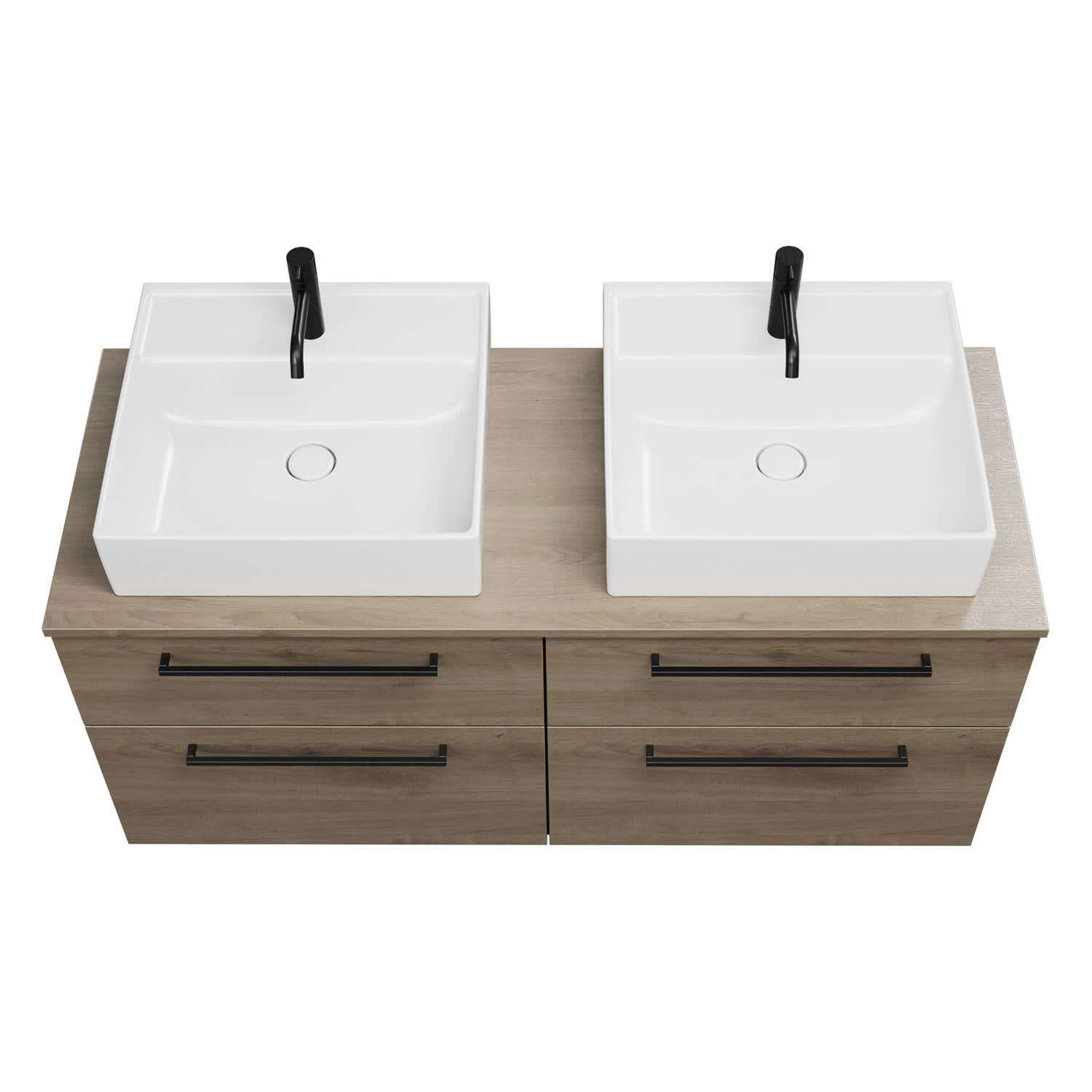 burgbad Eqio Waschtischkombination mit Keramik-Aufsatzwaschtisch 140 cm, links und rechts, mit Stangengriff G0234