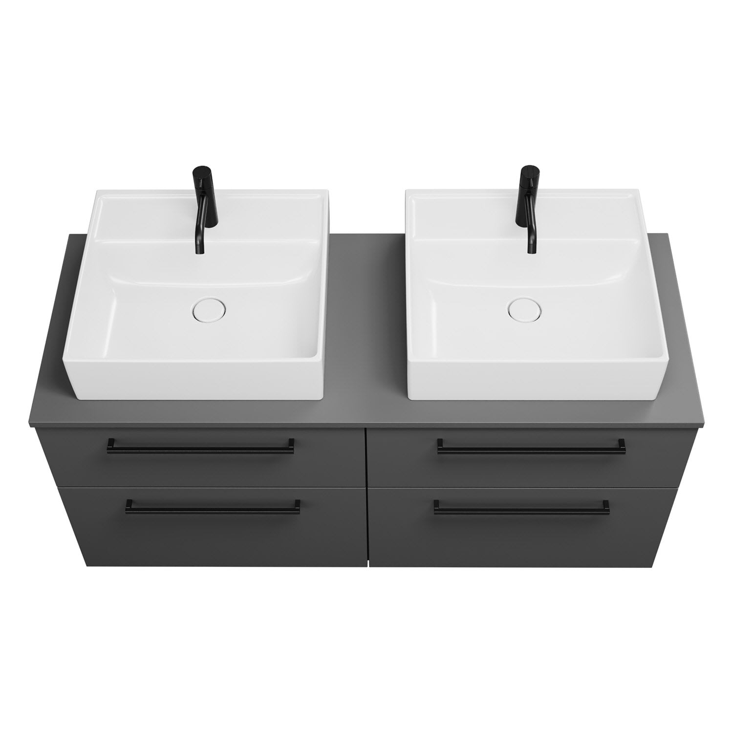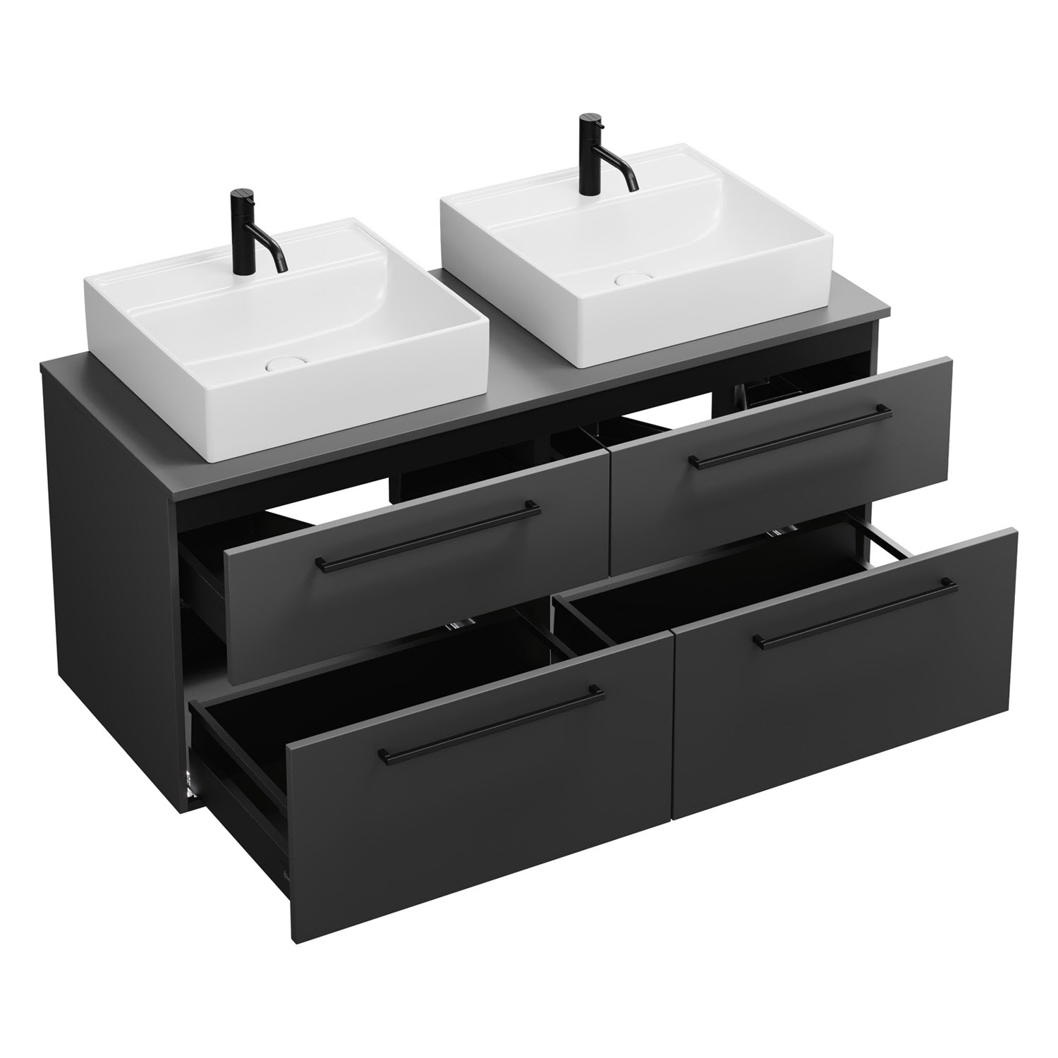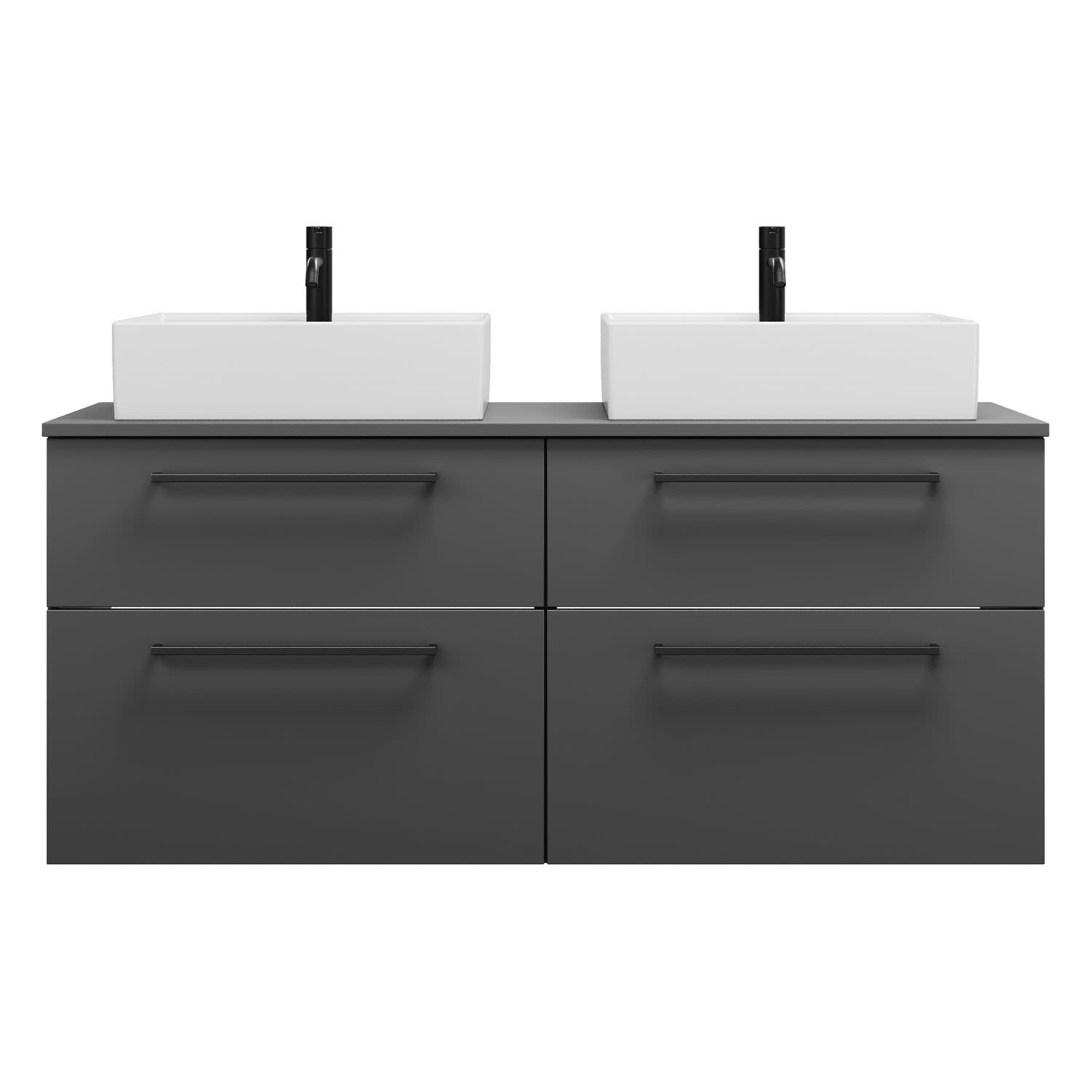 burgbad Eqio Waschtischkombination mit Keramik-Aufsatzwaschtisch 140 cm, links und rechts, mit Stangengriff G0234