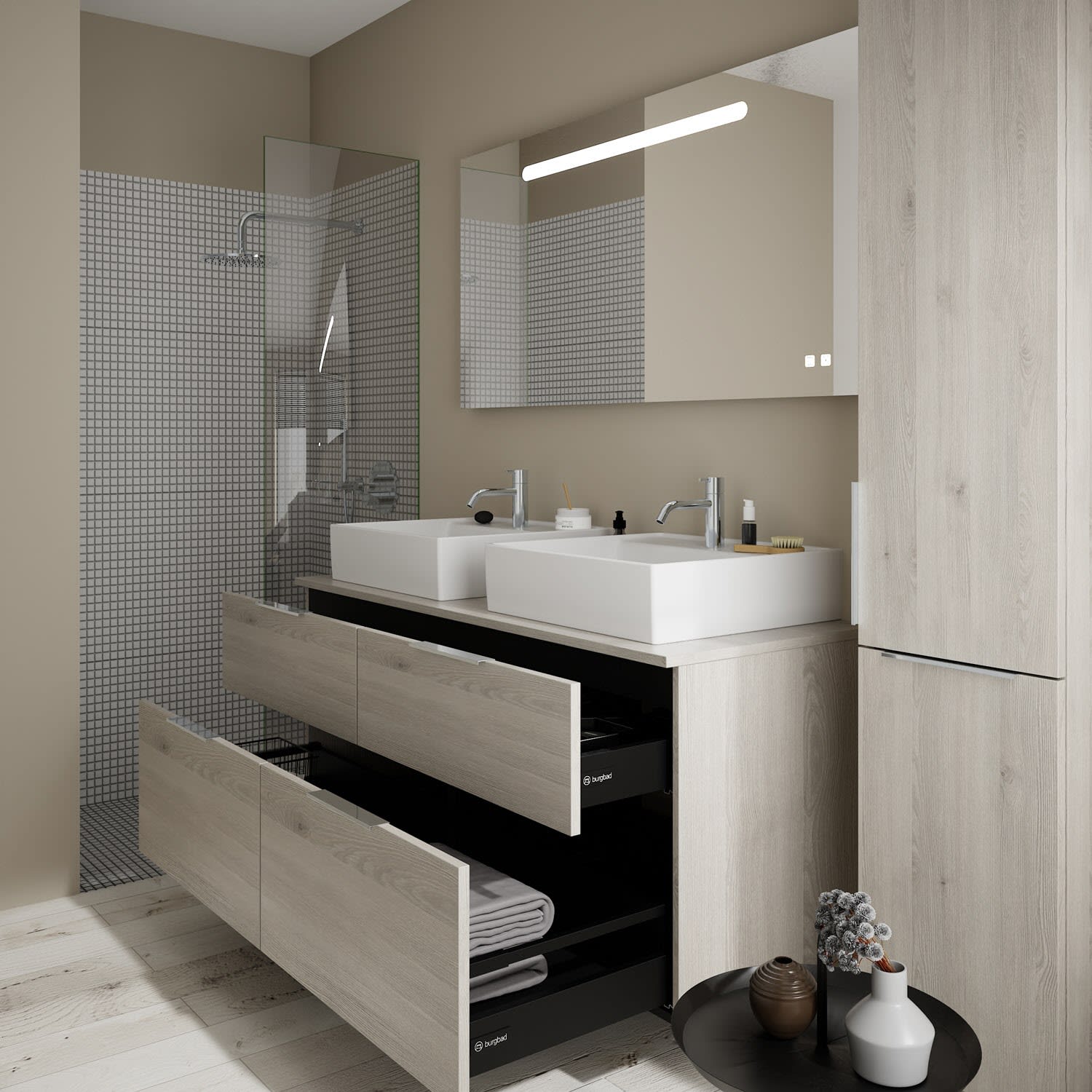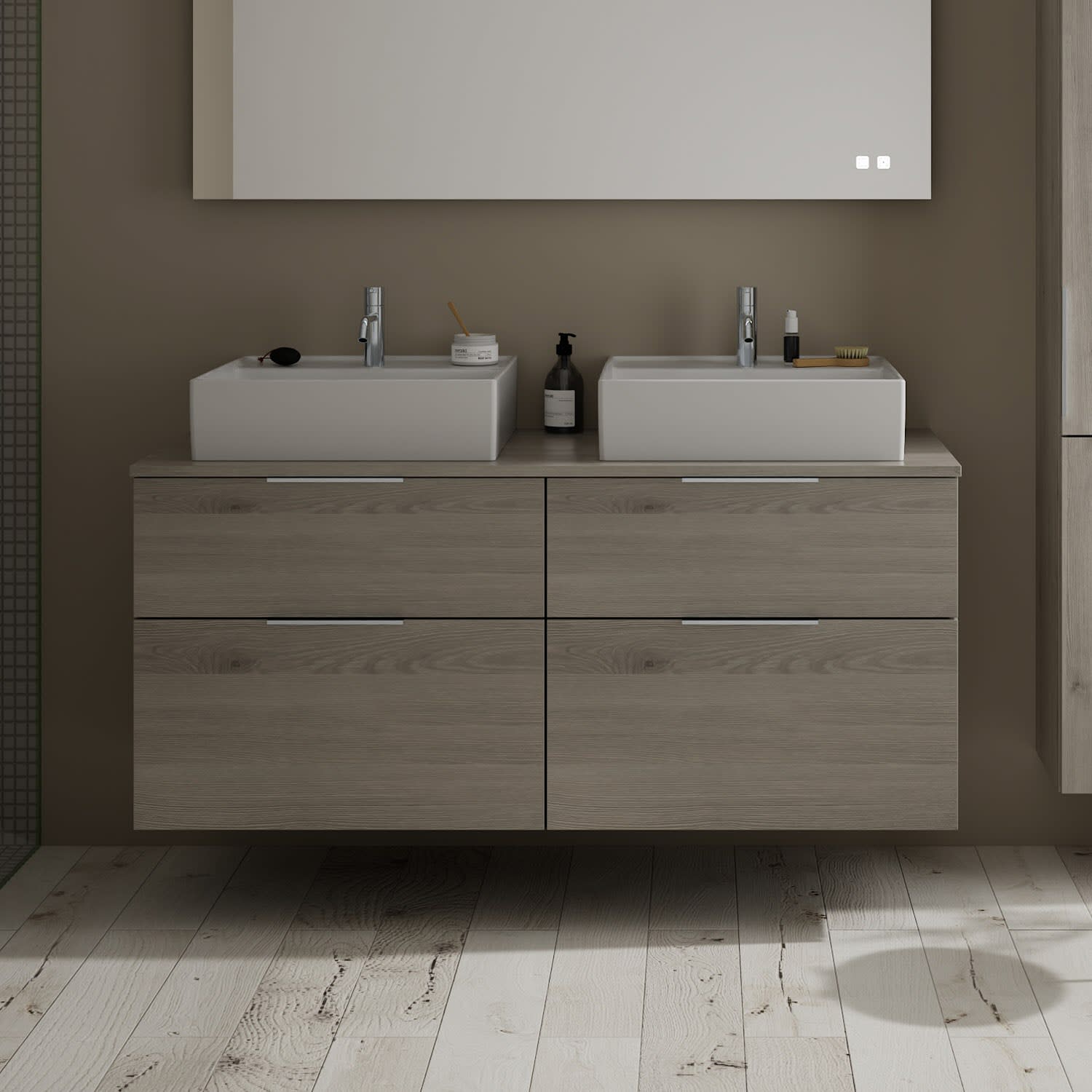 burgbad Eqio Waschtischkombination mit Keramik-Aufsatzwaschtisch 140 cm, links und rechts, mit Griff G0146