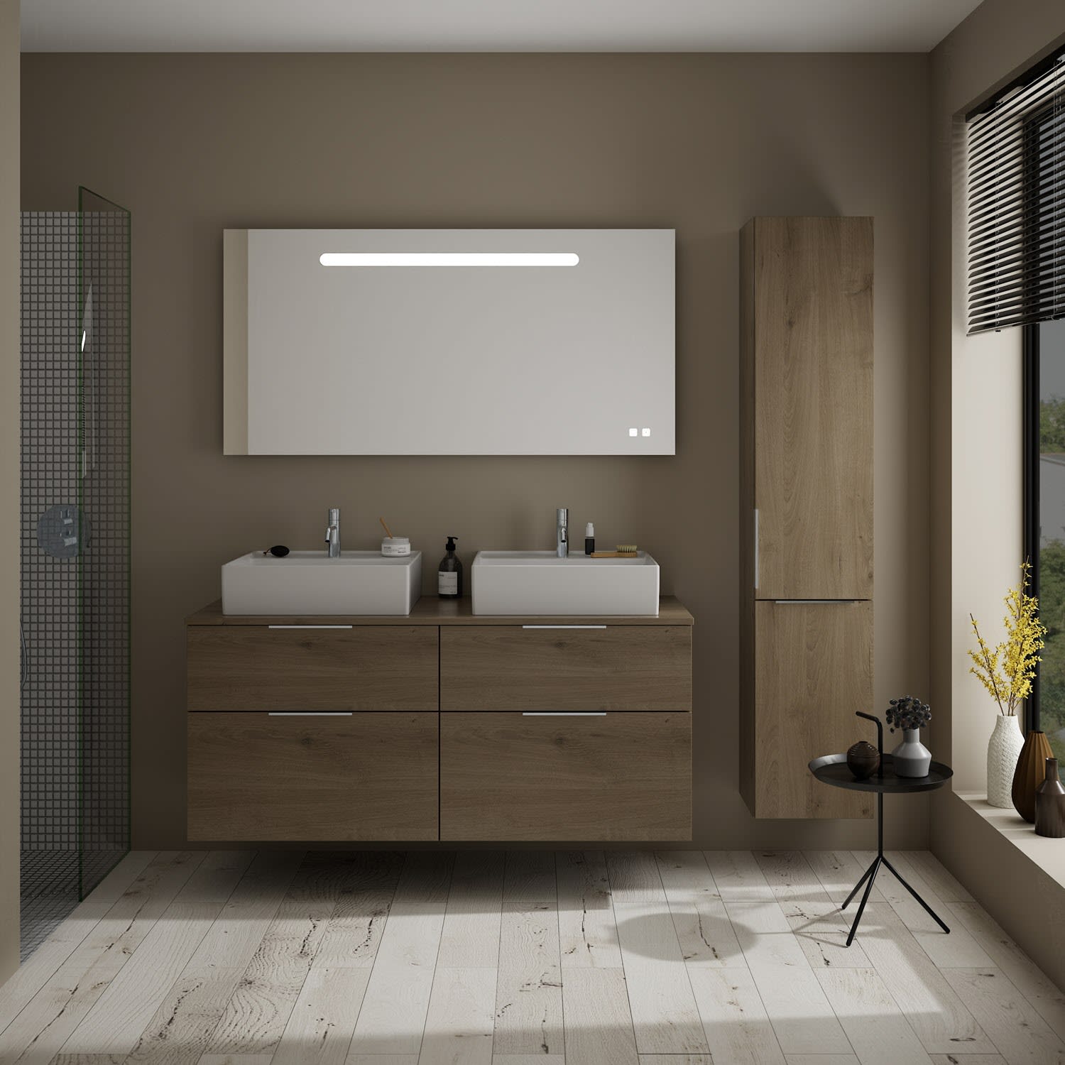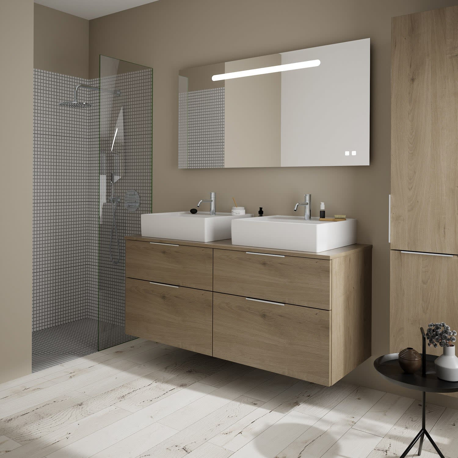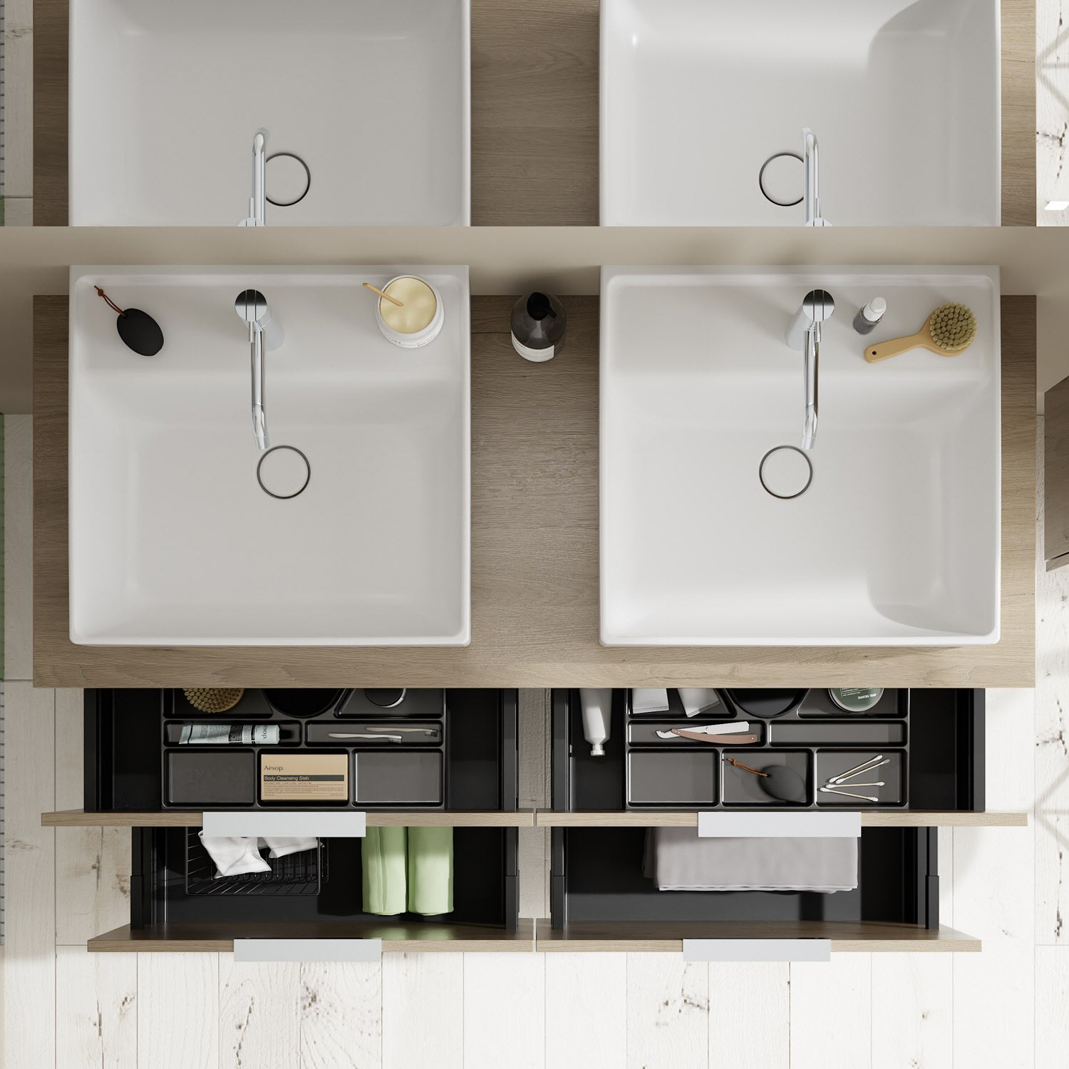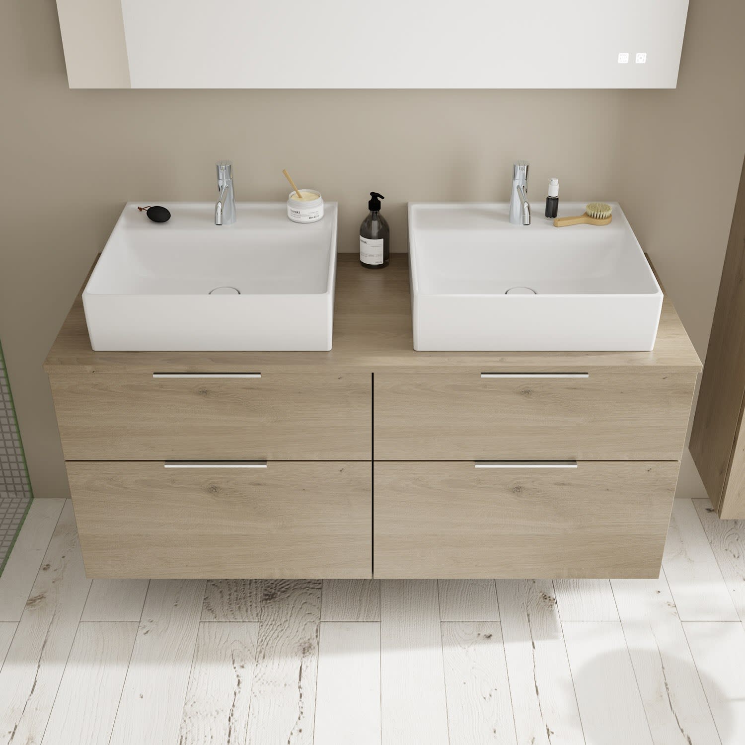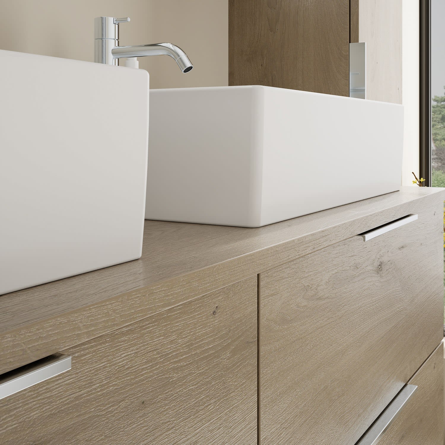 burgbad Eqio Waschtischkombination mit Keramik-Aufsatzwaschtisch 140 cm, links und rechts, mit Griff G0146