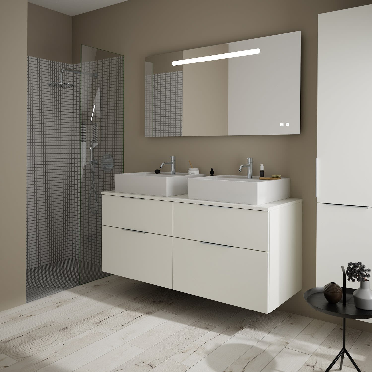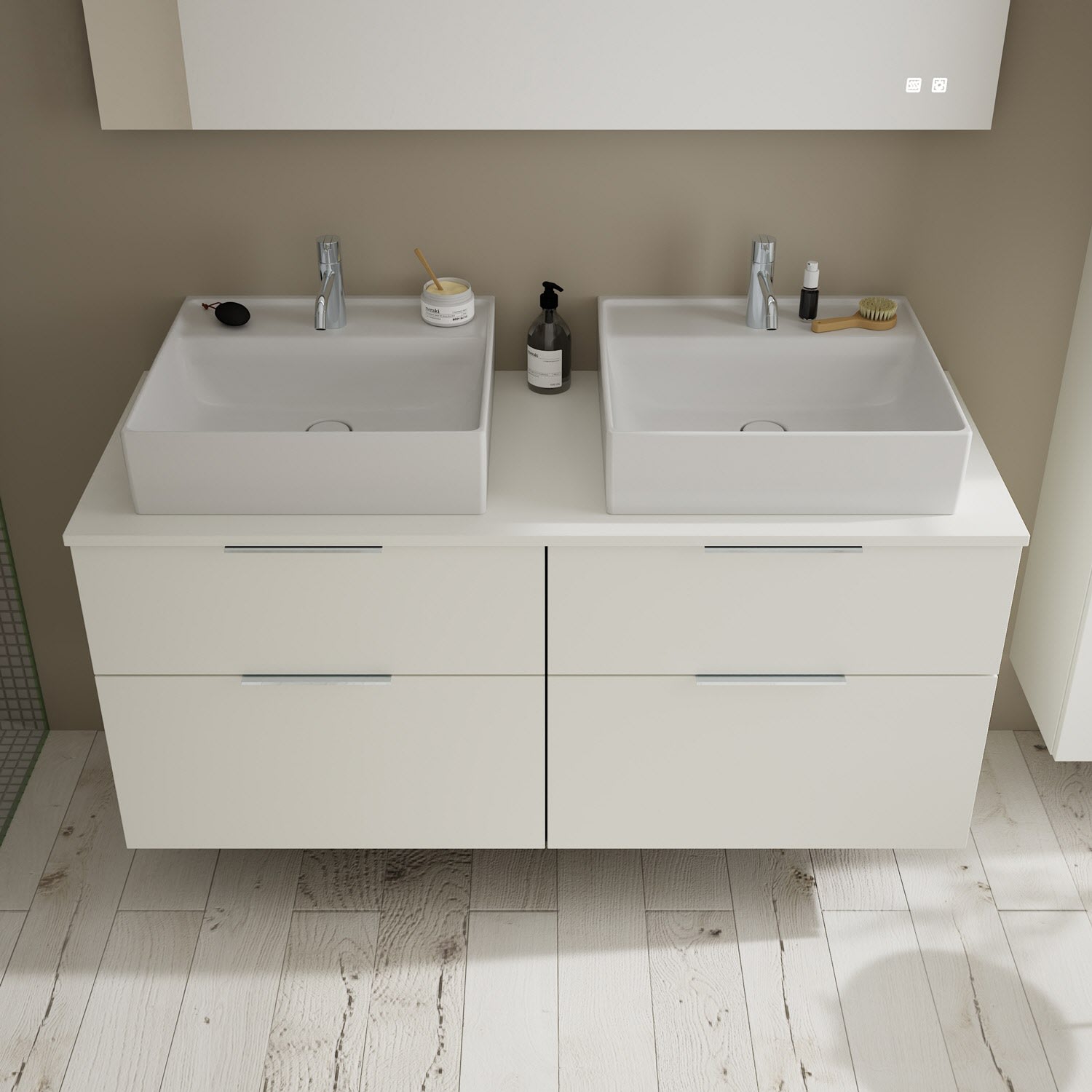 burgbad Eqio Waschtischkombination mit Keramik-Aufsatzwaschtisch 140 cm, links und rechts, mit Griff G0146