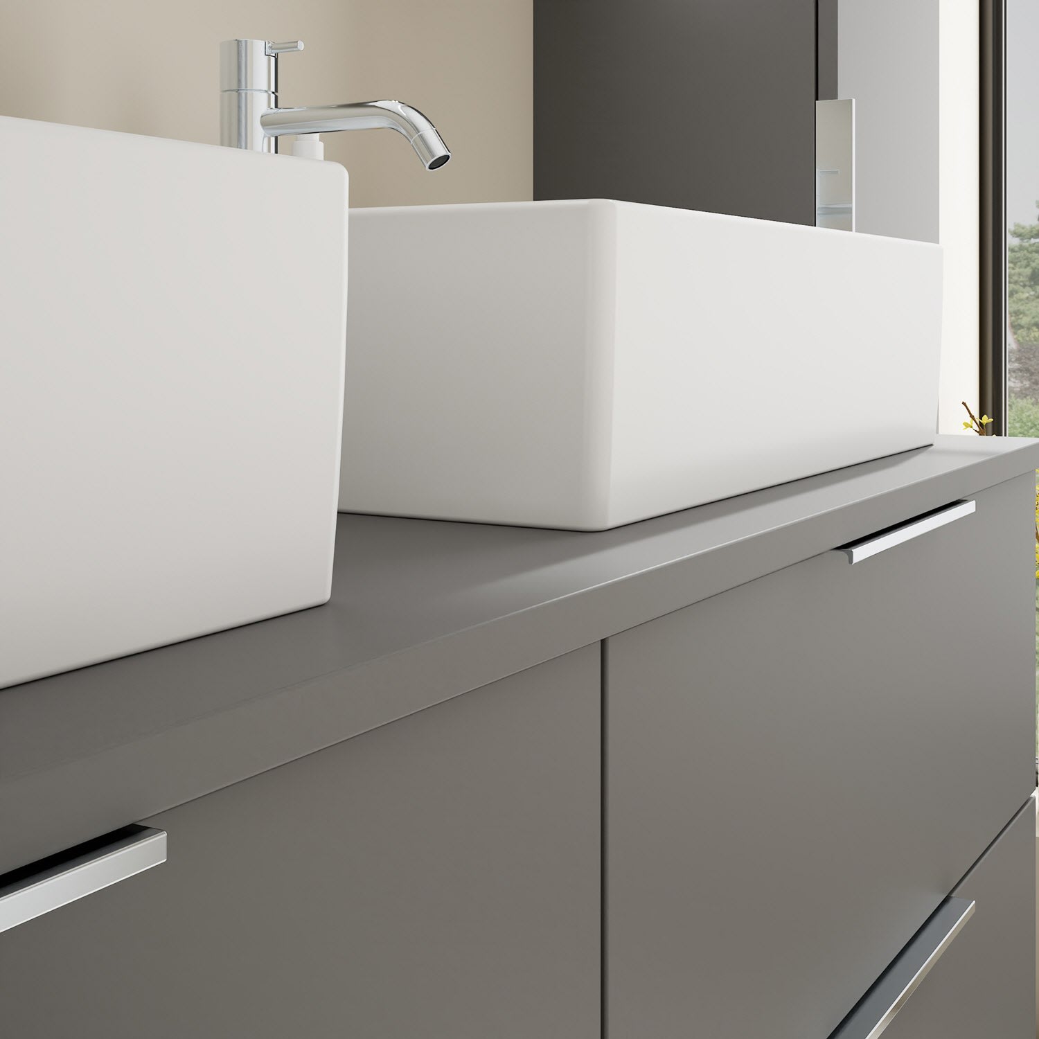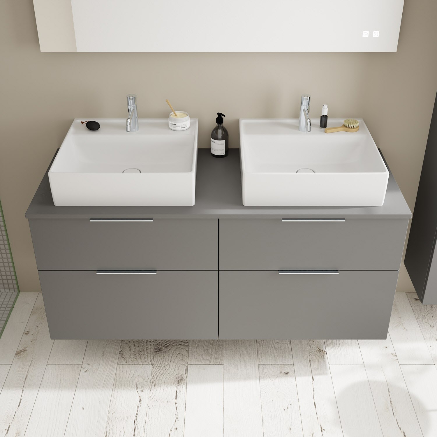 burgbad Eqio Waschtischkombination mit Keramik-Aufsatzwaschtisch 140 cm, links und rechts, mit Griff G0146