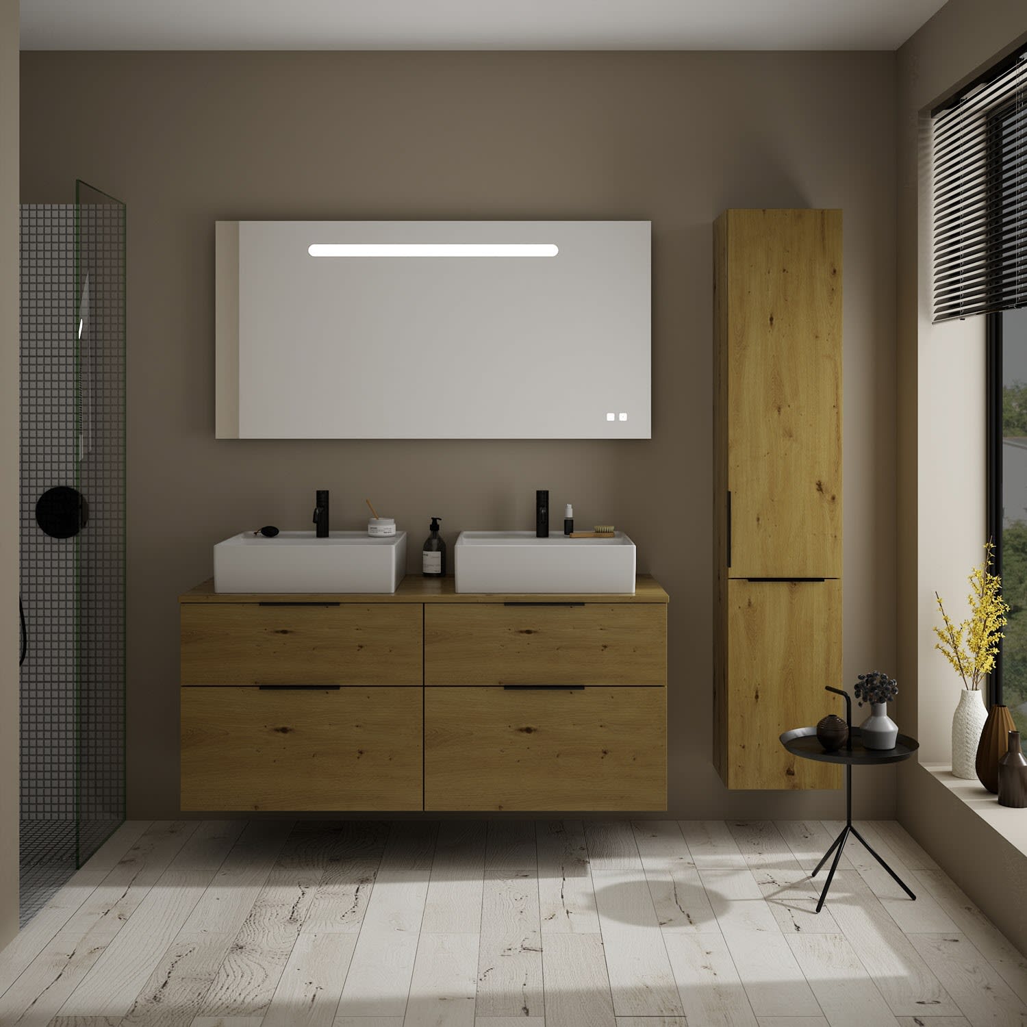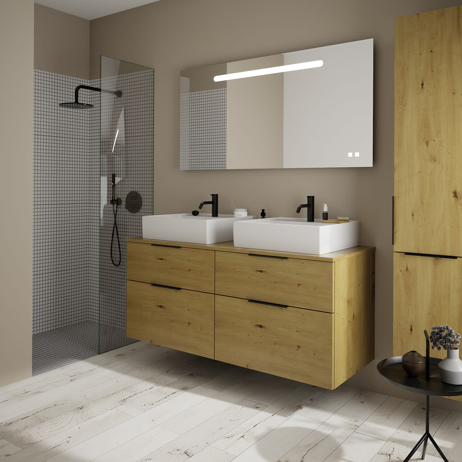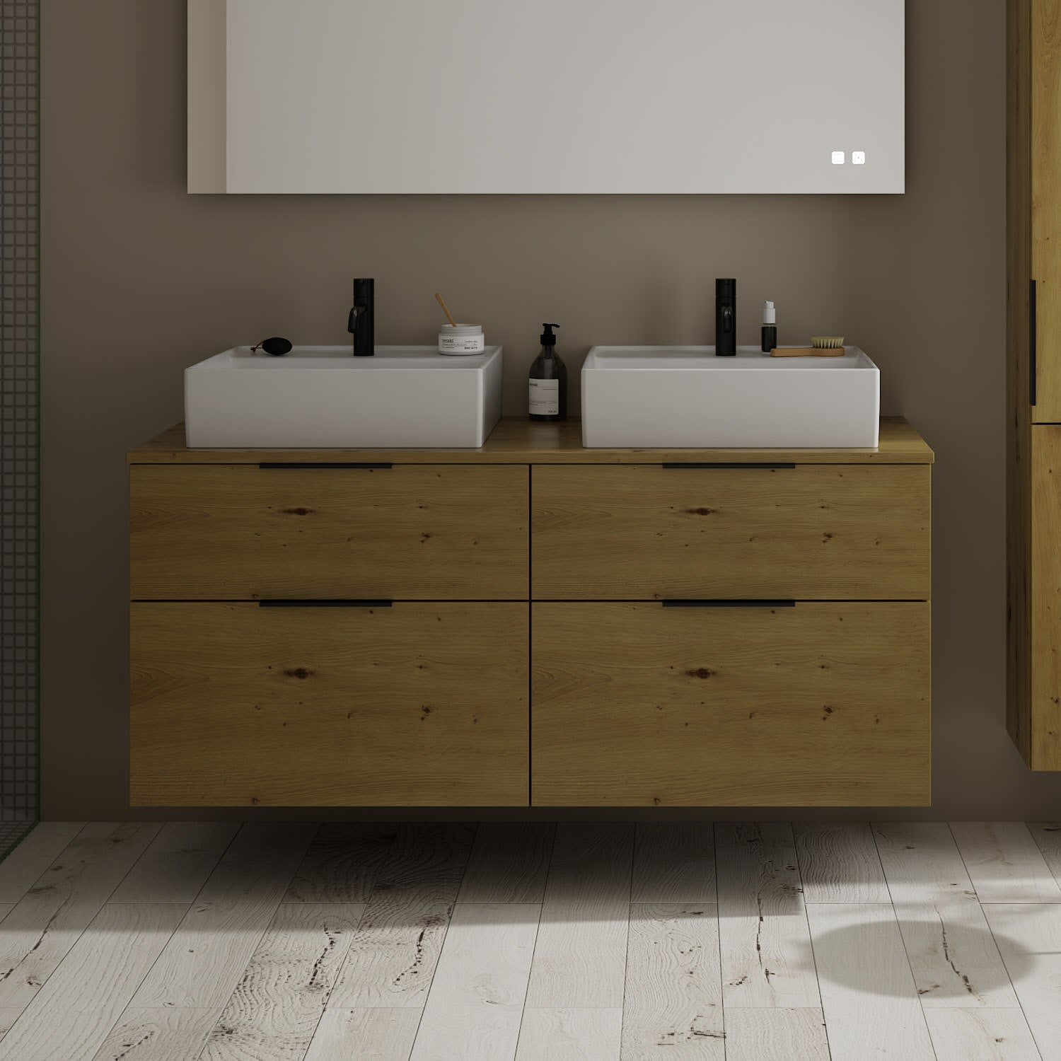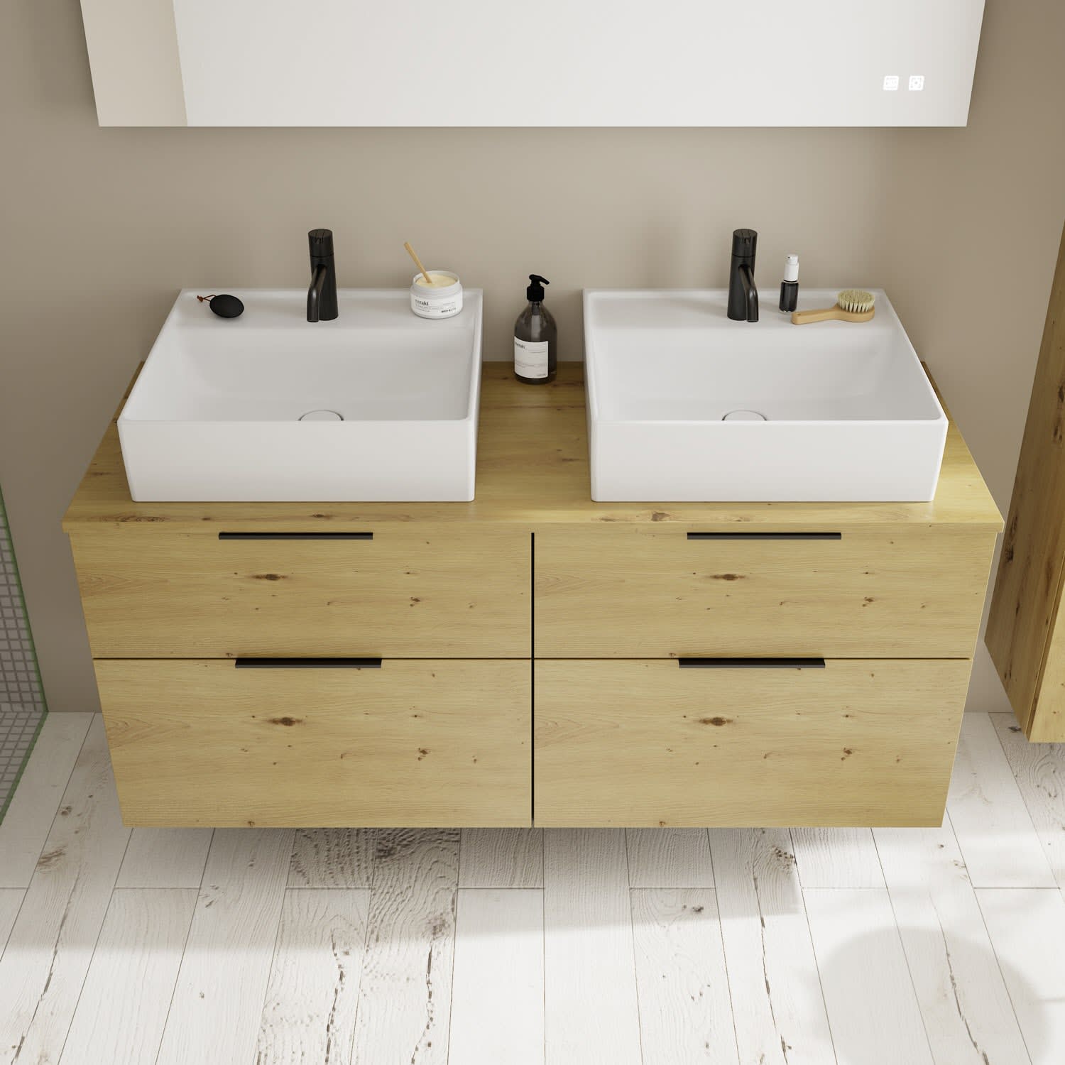 burgbad Eqio Waschtischkombination mit Keramik-Aufsatzwaschtisch 140 cm, links und rechts, mit Griff G0200