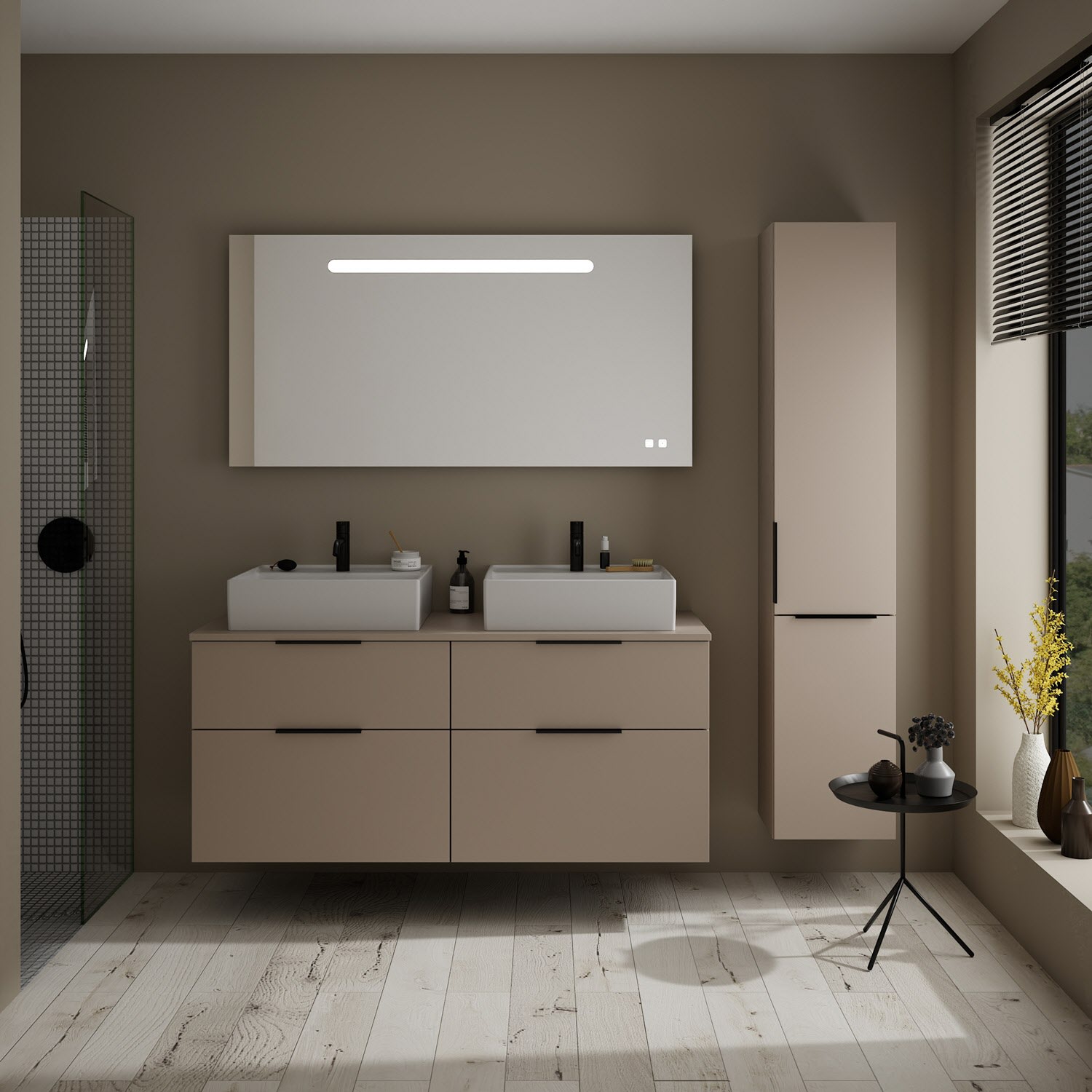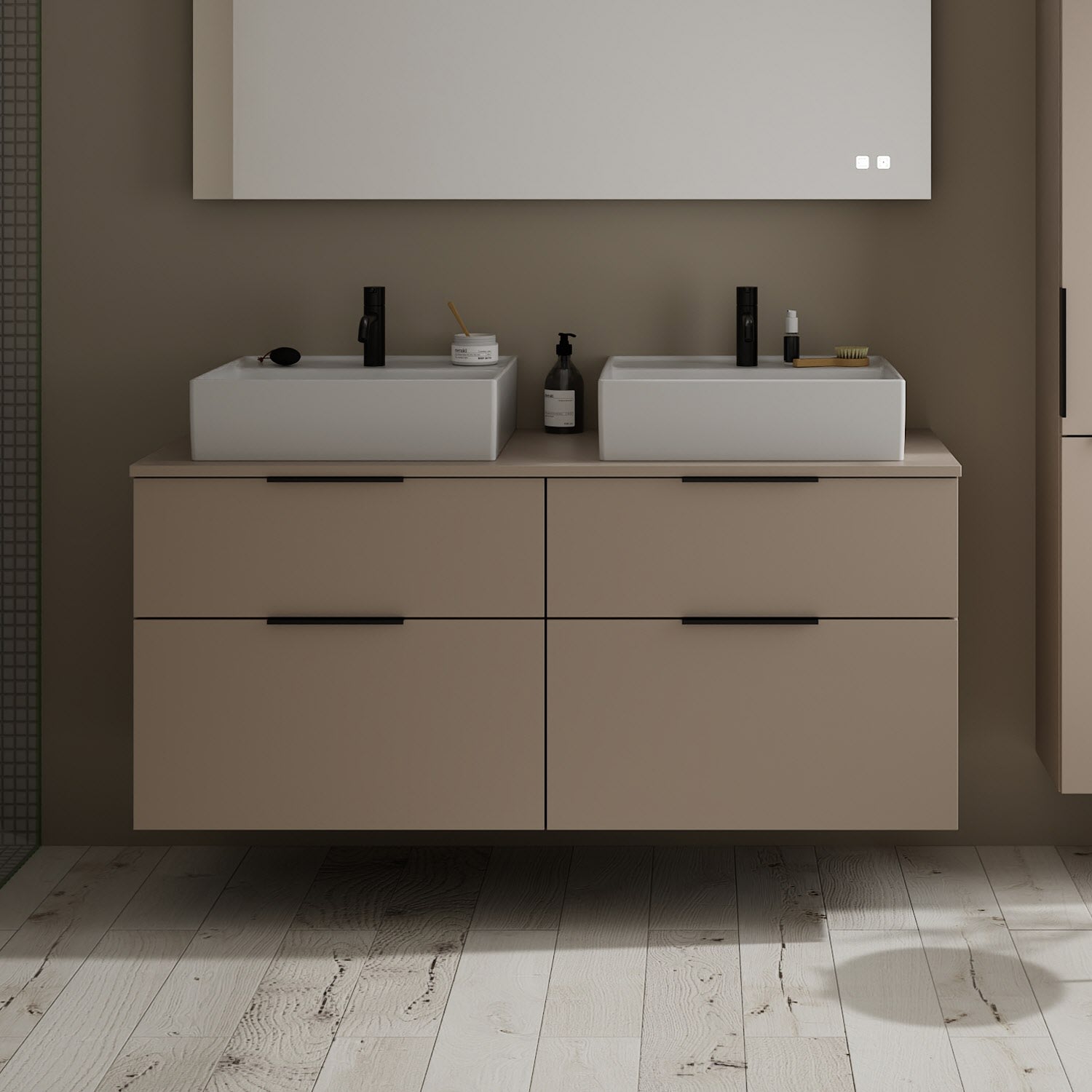 burgbad Eqio Waschtischkombination mit Keramik-Aufsatzwaschtisch 140 cm, links und rechts, mit Griff G0200