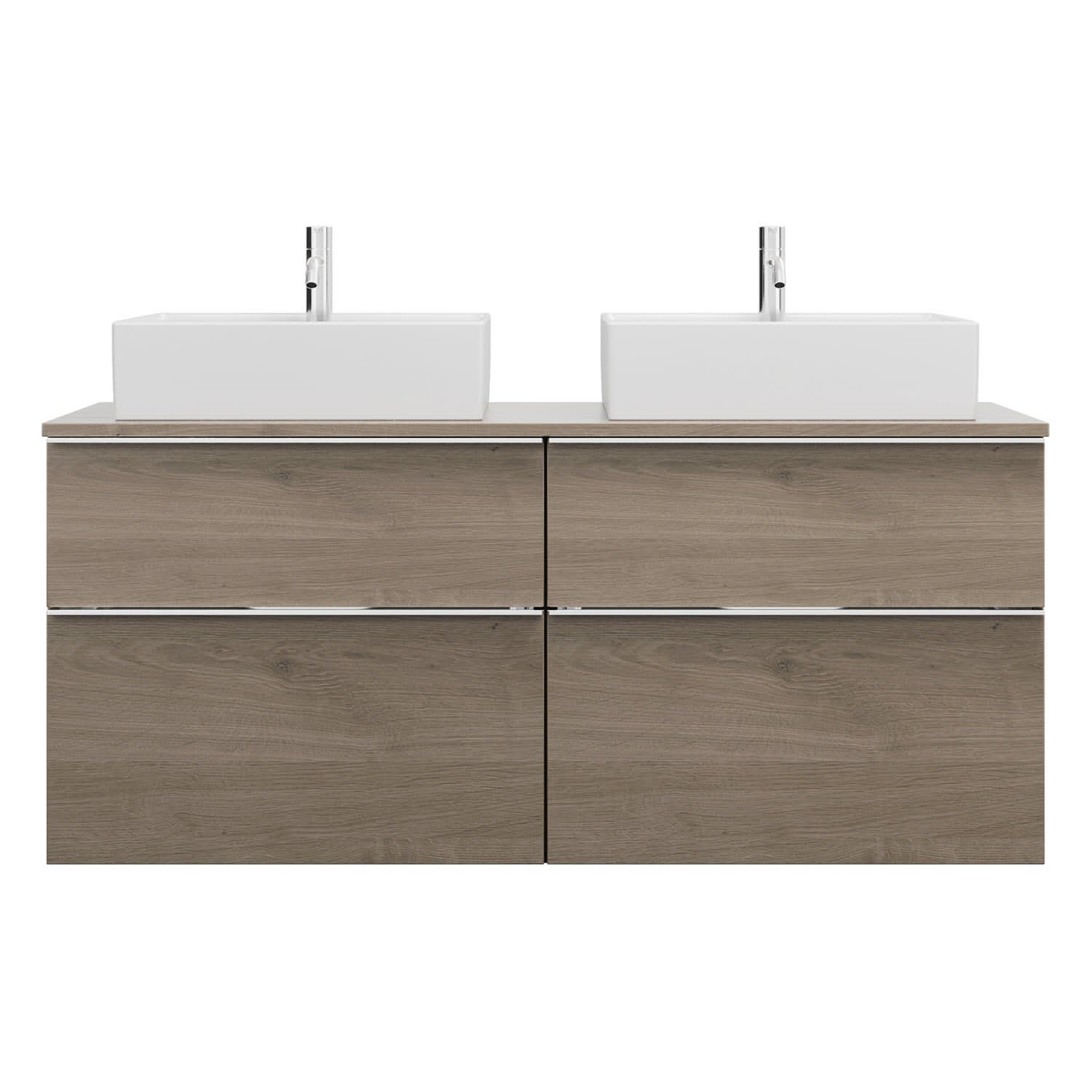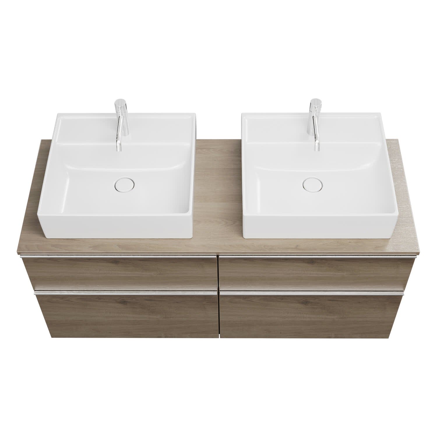burgbad Eqio Waschtischkombination mit Keramik-Aufsatzwaschtisch 140 cm, links und rechts, mit Griffleiste G0251
