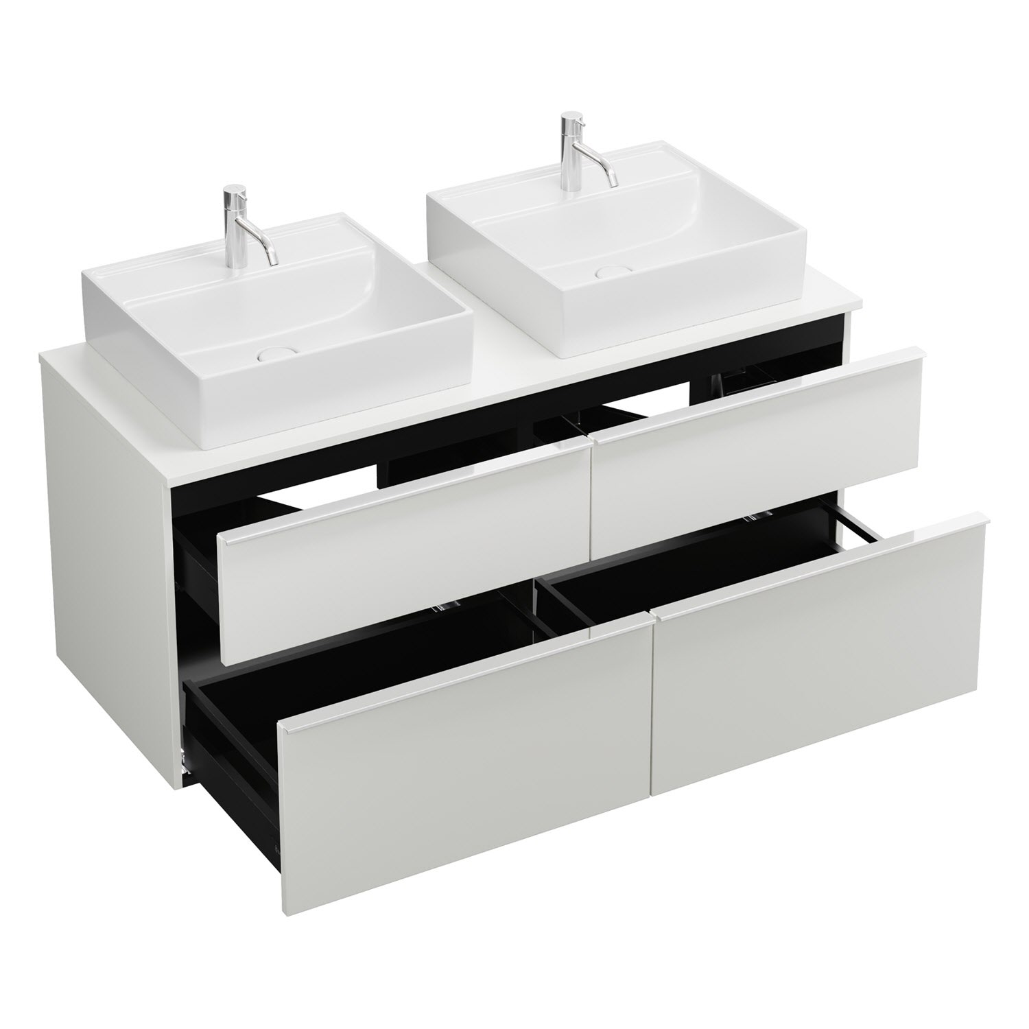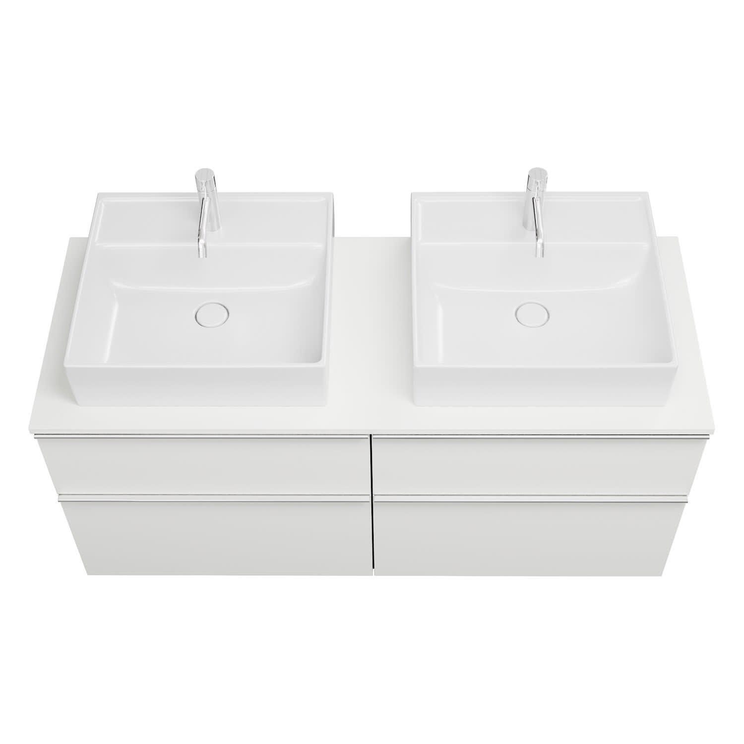burgbad Eqio Waschtischkombination mit Keramik-Aufsatzwaschtisch 140 cm, links und rechts, mit Griffleiste G0251
