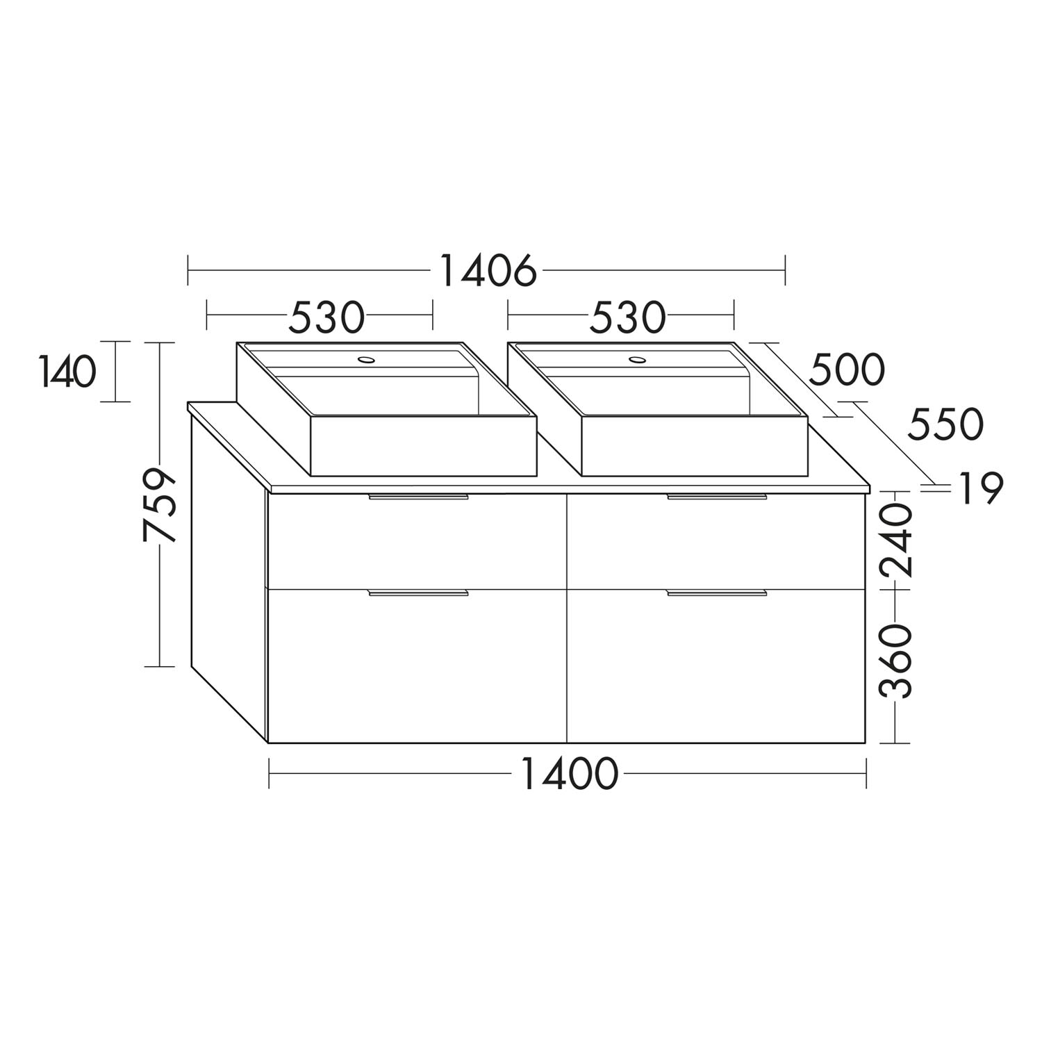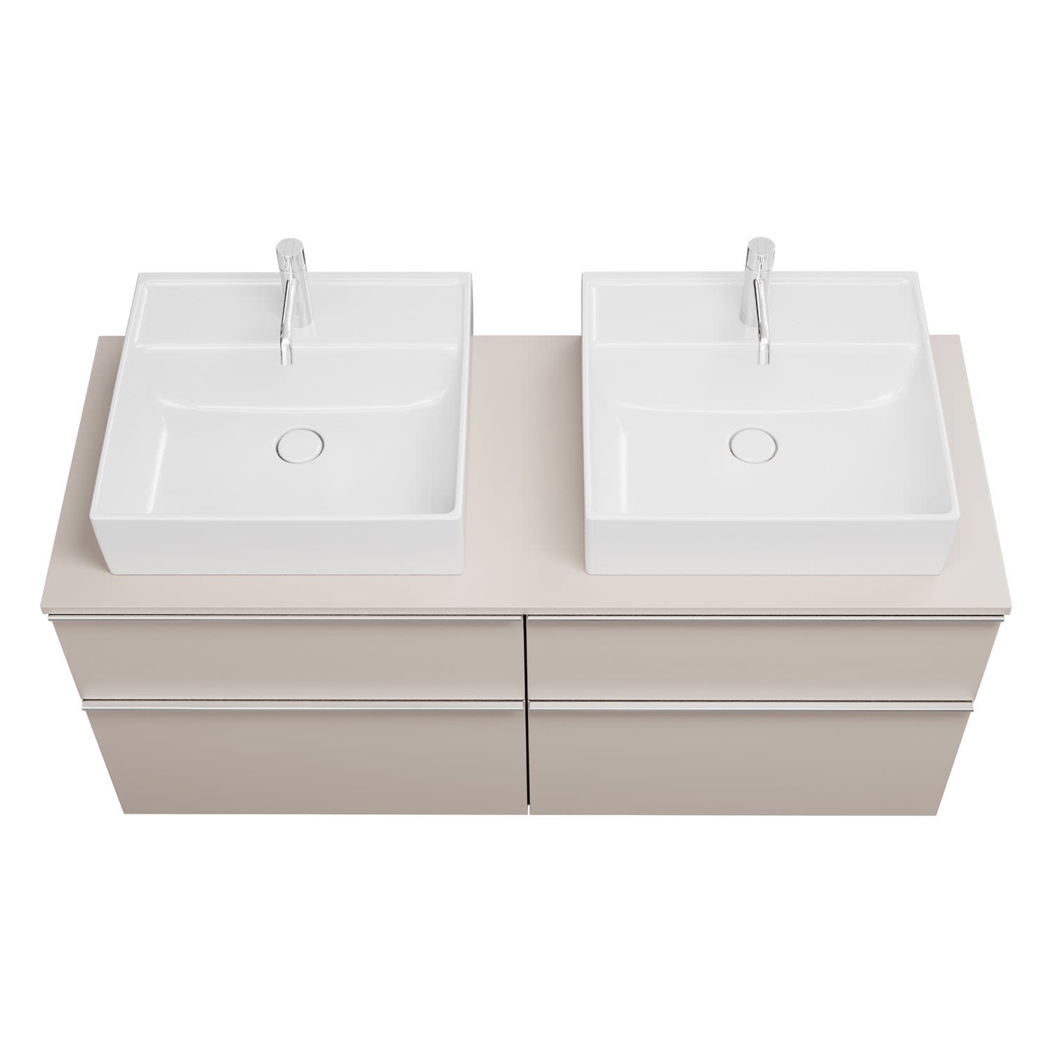 burgbad Eqio Waschtischkombination mit Keramik-Aufsatzwaschtisch 140 cm, links und rechts, mit Griffleiste G0251