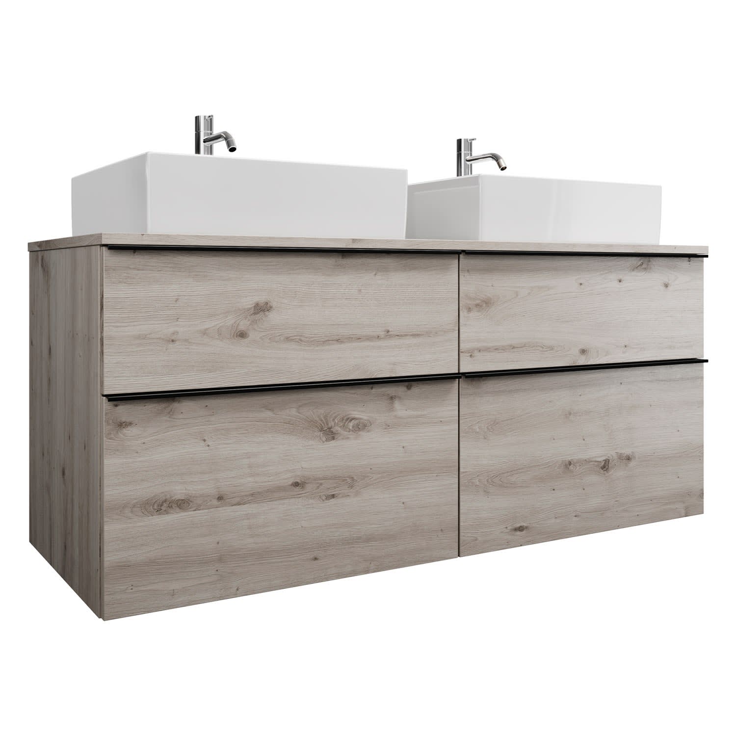 burgbad Eqio Waschtischkombination mit Keramik-Aufsatzwaschtisch 140 cm, links und rechts, mit Griffleiste G0252