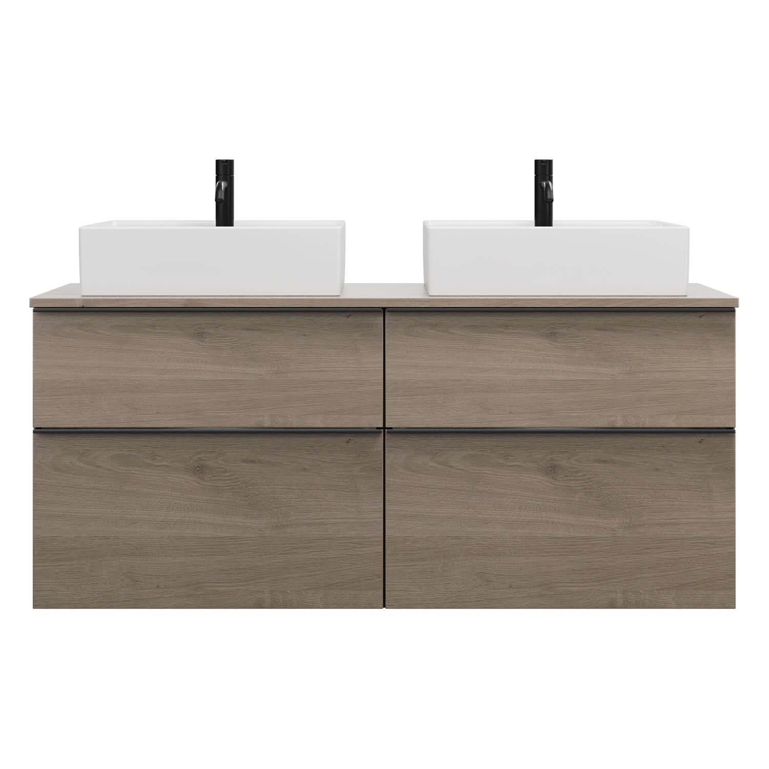 burgbad Eqio Waschtischkombination mit Keramik-Aufsatzwaschtisch 140 cm, links und rechts, mit Griffleiste G0252
