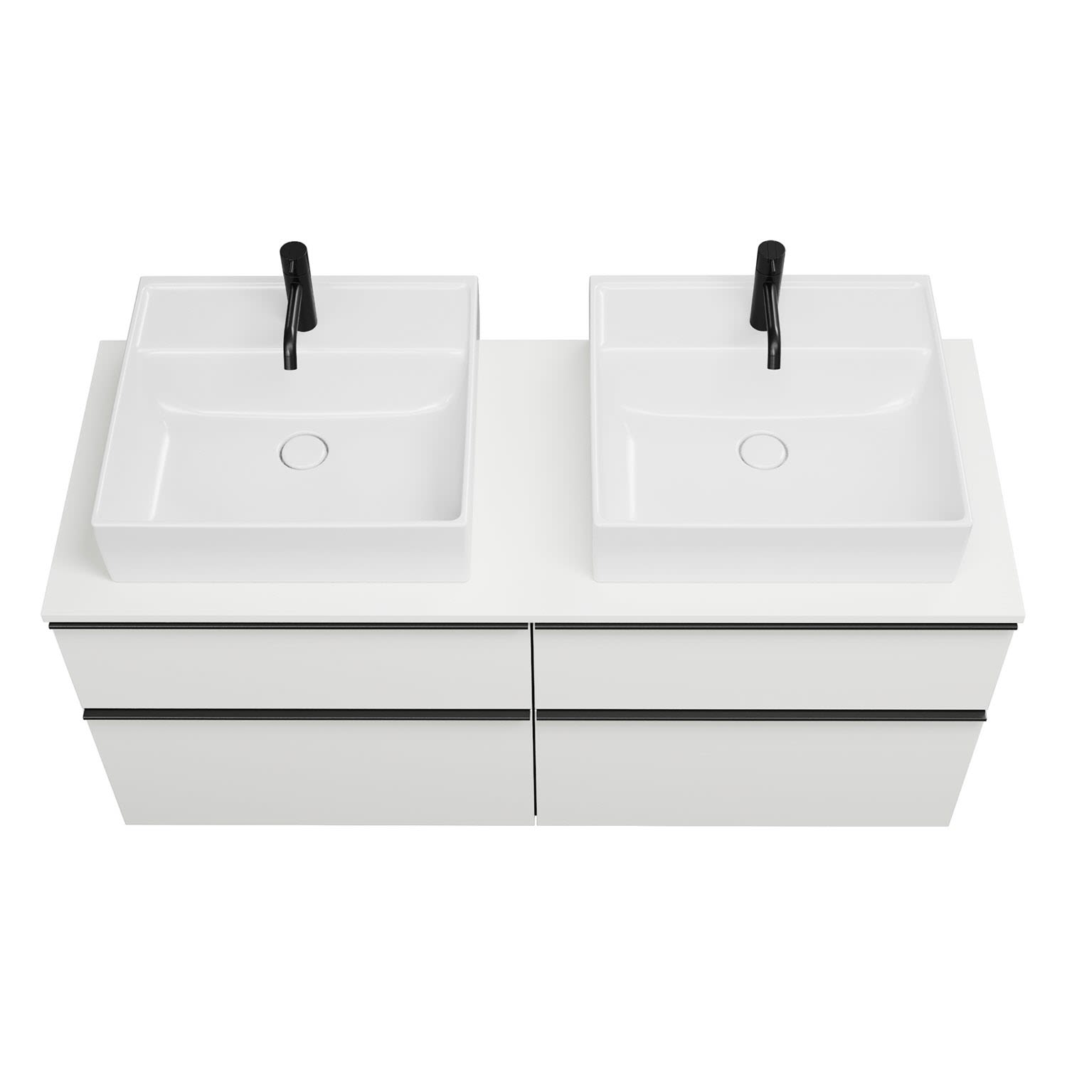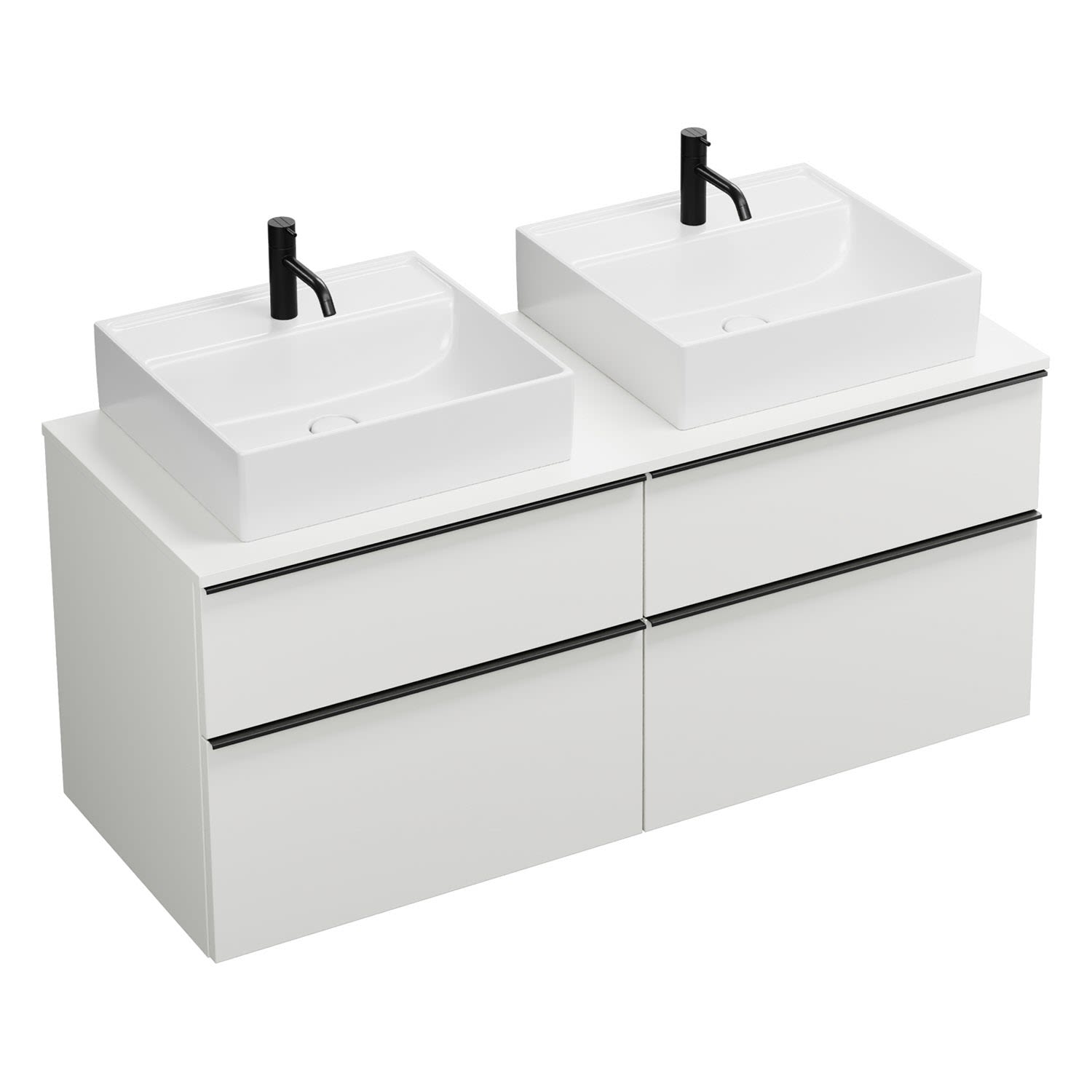 burgbad Eqio Waschtischkombination mit Keramik-Aufsatzwaschtisch 140 cm, links und rechts, mit Griffleiste G0252