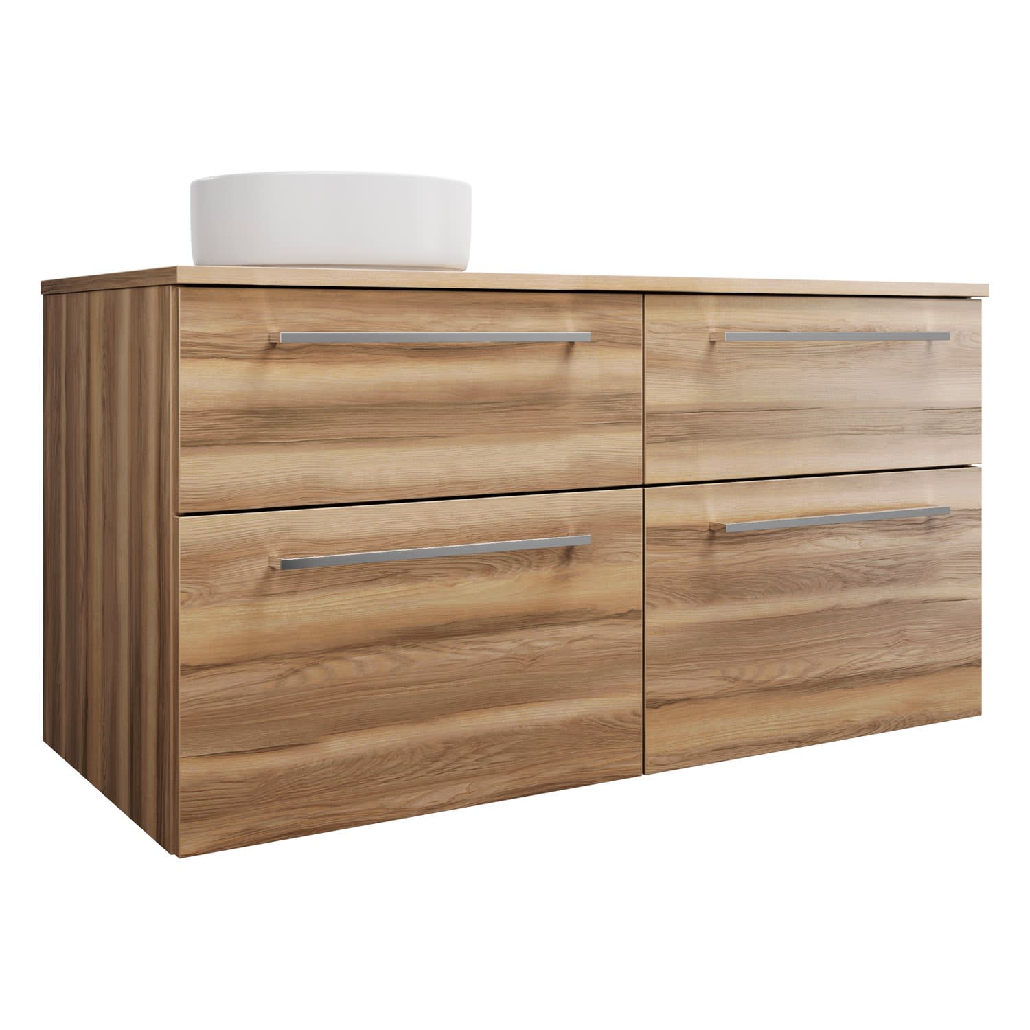 burgbad Eqio Waschtischkombination mit Keramik-Aufsatzwaschtisch 120 cm, links, mit Stangengriff P95